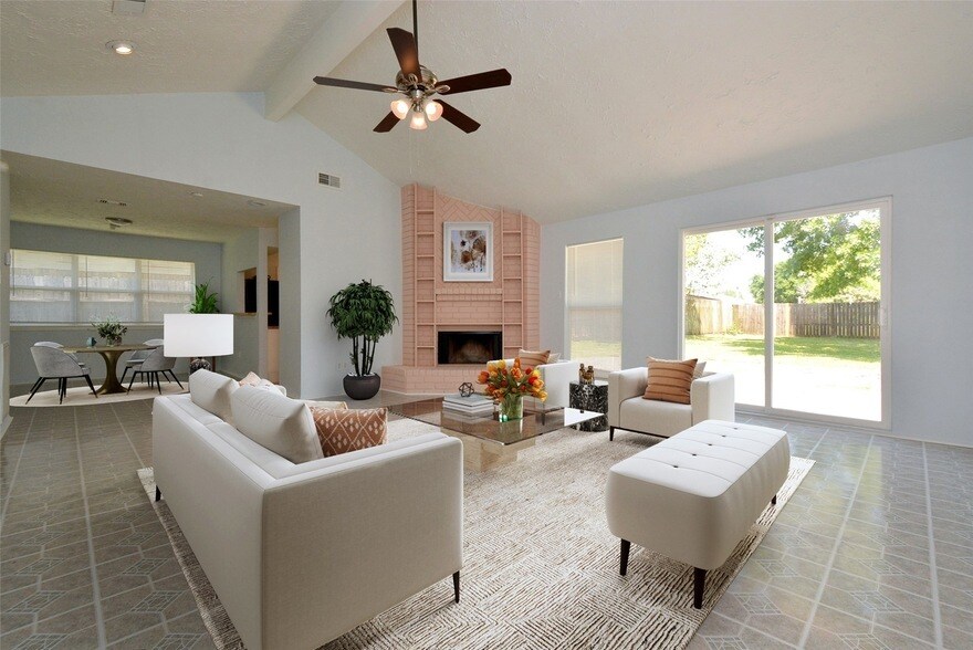 Welcome to your next home! This beautiful 3-bedroom, 2-bathroom residence is available for lease and offers a warm, inviting atmosphere with plenty of space to live and relax. The open-concept living and dining area is perfect for everyday comfort or hosting friends and family. You ll love the updated kitchen, featuring modern appliances including a refrigerator, microwave, washer, and dryer sleek countertops, and generous cabinet space. Each bedroom is filled with natural light and room to unwind, while the spacious primary suite includes its own private bathroom and walk-in closet. Step outside to a large backyard with a patio area, ideal for barbecues, playtime with pets, or simply enjoying the outdoors. Additional highlights include central heating and air, in-home laundry, and a 2-car garage. Tucked away in a quiet, friendly neighborhood close to parks, schools, and shopping, this home truly has it all. Come see it for yourself you ll feel right at home!