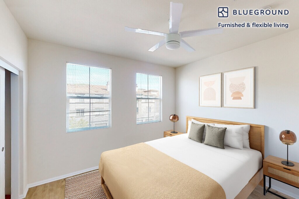 Photos Coming Soon These sample photos are meant to give you a sense of Blueground’s design style. Layout and furniture are subject to change. This apartment will be ready by the date indicated. Be the first to rent! Feel at home wherever you choose to live with Blueground. You’ll love this stylish Simi Valley furnished two bedroom apartment with its modern decor, fully equipped kitchen, and cozy living room. Ideally located, you’re close to all the best that Simi Valley has to offer! (ID #LAX10290A) The advertised rate of $3,340/month is the lowest available price, based on a 12 month(s) and 30 day(s) stay with a move-in date of December 3, 2025. Rates vary depending on the duration of stay, season, and other parameters. For exact pricing and additional pricing components, please visit our website and enter your desired move-in and move-out dates. The rate is applicable when billed upfront; it can be higher if billed in multiple payments. Brokers are welcome to reach out. Were you looking for an unfurnished lease? Try Blueground instead and upgrade from unfurnished to furnished living: - Furnished at rates comparable to unfurnished - No setup or furniture costs - save thousands - Move-in ready - save time, just bring your suitcase Designed with you in mind As with any Blueground apartment, you’ll find a thoughtfully designed space complete with beautiful furniture and a fully equipped kitchen in this two bedroom property. And, thanks to our superior quality mattresses, luxury linens, and towels, you can relax knowing you’ll always feel comfortably at home. When you’re ready for some fun, you can take in the Simi Valley vibes or bring the entertainment to you with the premium wireless speaker or smart TV. This apartment also offers in-apartment laundry. Amenities Building amenities unique to this two bedroom apartment include an on-site: - Dryer - Washing machine - Parking Arrival and ongoing support The entire apartment is yours to enjoy! Throughout your stay, you’ll have access to our Client Experience team through the Blueground App. You can schedule additional cleanings, submit maintenance requests, and view our neighborhood recommendations with just a few taps. We’ll share all details upon confirmation of your stay. Other things to note This Blueground apartment has flexible lease options, allowing you to book it for one month, a year, or more. Parking is offered based on availability and is subject to a fee. Please keep in mind that this is a walk up building.