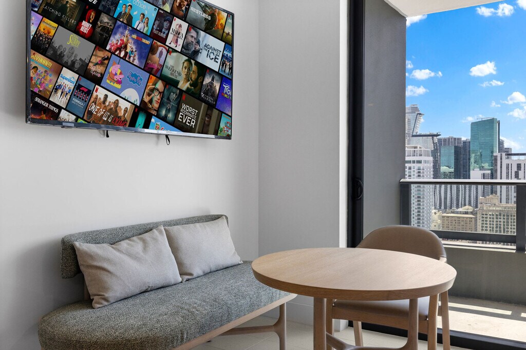 The advertised rate of $4,467/month is the lowest available price, based on a 30 day(s) stay with a move-in date of August 17, 2026. Rates vary depending on the duration of stay, season, and other parameters. For exact pricing and additional pricing components, please visit our website and enter your desired move-in and move-out dates. The rate is applicable when billed upfront; it can be higher if billed in multiple payments. Feel at home in this beautifully designed studio, offering stunning downtown skyline views and the perfect blend of modern luxury and cozy comfort. This studio features an open layout with a cozy sofa and modern décor. The modern kitchen is fully equipped with quality appliances and plenty of counter space. The elegant bathroom is clean and spacious, with luxury finishes. Enjoy fast Wi-Fi, great for streaming or remote work. Enjoy free 24/7 covered parking just steps from the building. Early check-in is available for an additional fee, subject to availability. The daily resort fee of $37.45 must be paid at the front desk during check-in with a credit card. Valet parking is available at the following rates: 0-4 hours is $43, 4-24 hours is $75, and oversized vehicles have an additional $15 fee. Spa and wellness services are available for an additional cost. Enjoy walkable access to Miami’s top attractions. Bayside Marketplace, Bayfront Park and the Kaseya Center are less than half a mile away. Museum Park is half a mile away, PortMiami is 1 mile away, Brickell is 1.5 miles away and South Beach is 5 miles away. This studio is steps away from Miami Worldcenter, close to the Adrienne Arsht Center and close to the Miami Convention Center and key corporate hubs. Smoking is strictly prohibited on the entire property, including inside the unit and on the balcony, and violating this rule may result in a $300 fine. Please respect quiet hours between 10:00 PM and 8:00 AM. Reservations must be made by a person who is at least 21 years old, and the reservation holder’s presence is required throughout the entire stay. Please use designated trash containers. Failing to meet the checkout time may incur an extra night charge. We do not provide washcloths. Any damages will result in additional charges. Includes high-speed internet. [SI]