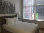 Feel at home in this modern, unique residence at 1600 Broadway, located on the fourth floor in the heart of Times Square in Midtown West. This apartment features high-speed Wi-Fi and a kitchen. Residents can enjoy access to the 'Club on the Square' amenities, including an entertainment lounge with billiards, putting green, virtual golf, a fitness center, a conference room, and a shared outdoor terrace with breathtaking views of the Times Square cityscape. Parking is not available on-site. The neighborhood offers world-class entertainment, renowned Broadway theaters, fine dining, and some of New York's most important museums and landmarks, all within steps of your home. Experience the convenience of unparalleled proximity to the city's major transportation hubs, Rockefeller Center, and the new Times Square Financial District. Any violation of the no-smoking policy in the apartment or on the balcony will incur a $200 fine plus the cleaning costs necessary to remove smoke odors. Quiet hours are observed from 9 pm to 8 am, and violators will be charged a $200 fine. NoiseWare technology may be used to ensure comfort and security, and tampering with the device is strictly prohibited and will result in a $200 fine. No parties or events are allowed, and violators will be charged a $200 - $500 fine. No pets are allowed. Guests must be at least 21 years of age to make a reservation and provide a state identification card or driver's license copy upon booking. Unit design and style may vary; unit floor level, furnishings, and floor plan may also vary. [SI]