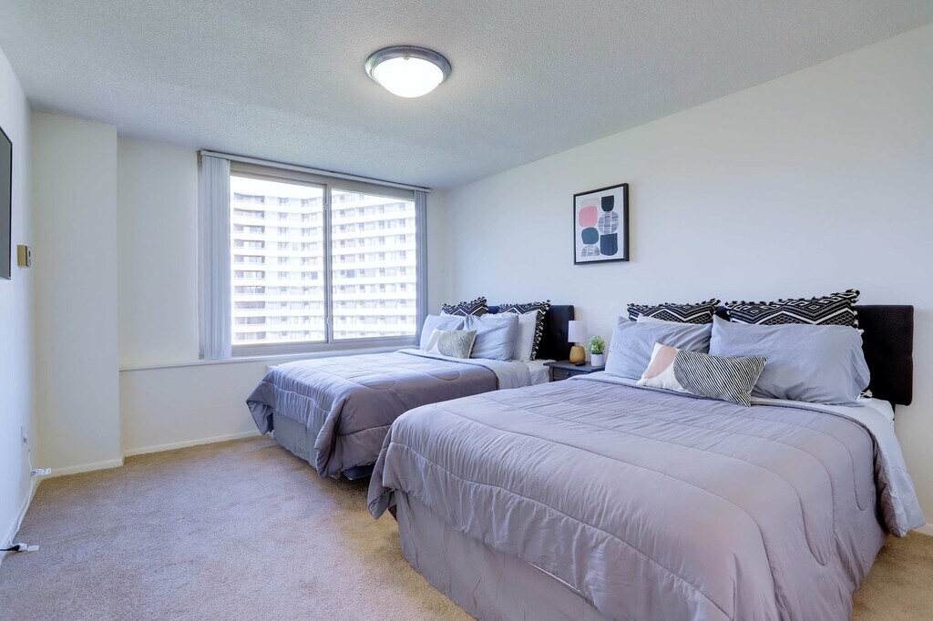 Feel at home in this bright and modern 2-bedroom, 2-bathroom apartment in the heart of National Landing, offering comfort, convenience, and an unbeatable location for exploring Arlington and Washington, D.C. This apartment is thoughtfully designed to combine style and convenience. The inviting living area features a cozy sofa bed and TV. Each bedroom includes two plush queen-size beds. The fully equipped kitchen has modern appliances and all the essentials needed for home-style meals. Enjoy the convenience of an in-unit washer and dryer. Late check-out is available and must be requested at least 24 hours in advance, subject to availability, for a fee of $50. The latest possible check-out is 12:00 PM. Located in National Landing, this apartment is steps from premier shopping at The Fashion Centre at Pentagon City and surrounded by great local dining, cafes, and vibrant city life. It's a short 3-block walk to the Crystal City and Pentagon City Metro stations, providing easy access to the National Mall, the White House, the Capitol, Georgetown, and Reagan National Airport. A large and well-stocked Whole Foods Market with a hot food bar and cafe is located nearby. Loud music and parties are strictly prohibited, and violations may result in fines from building management. All guests must be registered prior to arrival with full name and a valid government-issued ID. Unregistered guests are not permitted. Unauthorized late check-out will result in a charge equivalent to one night’s stay. Please do not send packages to the property, as deliveries are not accepted or guaranteed. Washcloths are not provided. If the property is left in excessively poor condition, an additional cleaning fee will be applied. The HVAC system is centralized and operates according to city regulations and seasonal cycles. Heating is in full operation from October 15 to May 1, and AC is in full operation from May 15 to October 1. Between transitions, the operation of the HVAC is at the discretion of the Building association according to the outside temperature. The building requires a brief guest screening prior to check-in that must be completed before arrival. [SI]