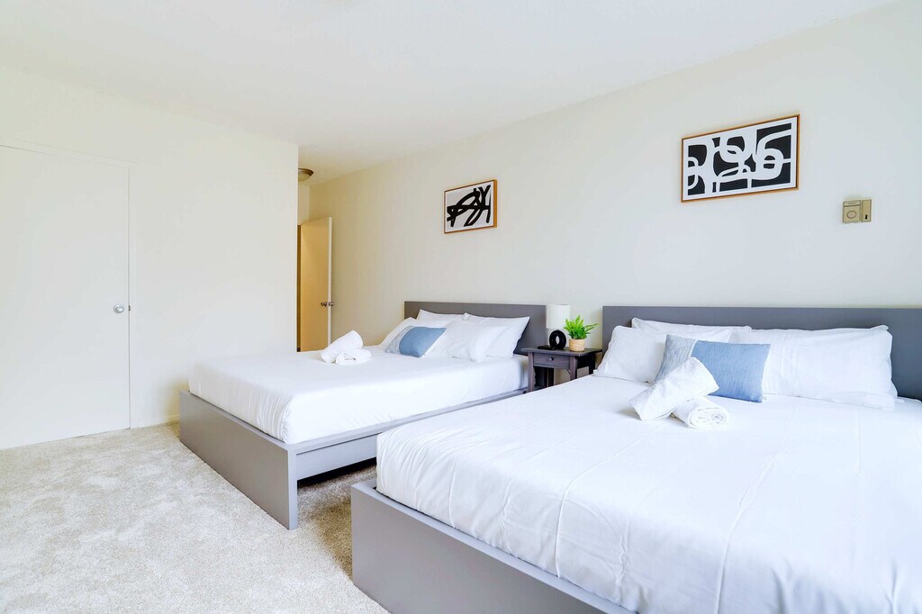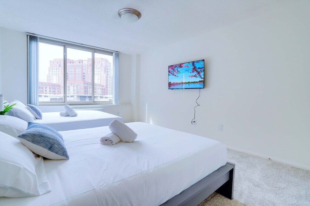 Feel at home in this stylish 2-bedroom apartment in the heart of National Landing. This apartment is your perfect home base for exploring Arlington and Washington, D.C. with incredible ease. Step into this bright and modern 2-bedroom, 1-bathroom apartment, thoughtfully designed for comfort and convenience. The spacious master bedroom features two comfortable queen-size beds, perfect for families or groups, while the second bedroom (den) offers a cozy and private space with a comfortable full-size bed. The comfortable living area provides a welcoming space with a TV, ideal for unwinding after a day of exploring. The kitchen is fully equipped with all the essentials you need to prepare meals. In-unit conveniences include a washer and dryer for a hassle-free stay. Parking is available; please display your parking permit at all times to avoid being towed. This apartment is in the heart of National Landing (Crystal City), a vibrant and well-connected neighborhood perfect for both business and leisure travel to the D.C. area. You're just a short stroll to the Crystal City Metro, connecting you to D.C.'s National Mall in minutes, and steps from premier shopping at Fashion Centre at Pentagon City. Great local dining options are within walking distance, including The Freshman, Enjera Restaurant, and Los Tios Grill. For fun bars and nightlife, visit Highline RxR and Freddie's Beach Bar. You are also just a few Metro stops from the National Mall and a short distance from Arlington National Cemetery. Getting around from this centrally located apartment is incredibly easy. You are just a 3-block walk from both the Crystal City & Pentagon City Metro Stations, putting all of D.C.'s landmarks at your fingertips. The Reagan National Airport (DCA) is just one Metro stop away, making for a stress-free commute. You are right next to the iconic 18-mile Mount Vernon Trail, perfect for a scenic bike ride, run, or walk along the Potomac River. For your convenience, a large and modern Whole Foods Market is located just a short walk away. Quiet hours are between 10:00 PM and 8:00 AM. All guests must be registered prior to arrival; the building requires a brief guest screening prior to check-in, and failure to provide the required information in advance may result in cancellation of the reservation, as per building regulations. Do not send packages to the property, as deliveries are not accepted or guaranteed. If the property is left in excessively poor condition, an additional cleaning fee will be applied. The building operates a centralized HVAC system in accordance with municipal regulations; heating runs from October 13 to May 1, while air conditioning is available from May 15 to October 1. During seasonal transitions, HVAC adjustments are managed by the building association based on outdoor temperatures. A $300 fine will be applied for smoking inside or hosting an unauthorized party. Unauthorized late check-out will result in a charge equivalent to one night’s stay. Lost FOB or access card: $250. Lost parking tag: $200–$300 (based on building rates). Stay connected with fast Wi-Fi, perfect for remote work and streaming. [SI]