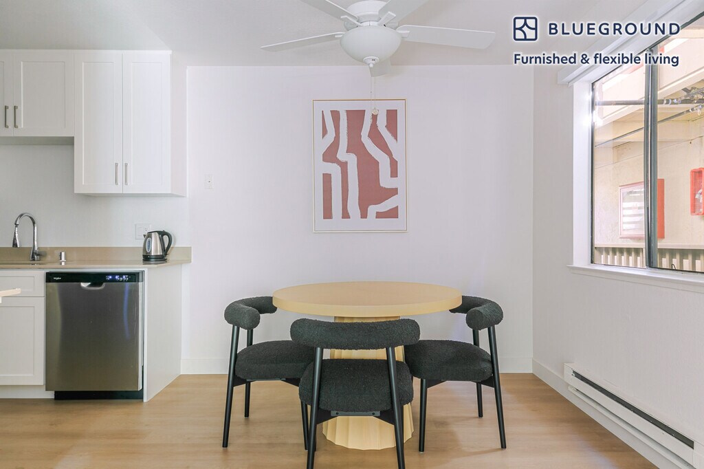 - Additional Property Details- Photos Coming Soon These sample photos are meant to give you a sense of Blueground’s design style. Layout and furniture are subject to change. This apartment will be ready by the date indicated. Be the first to rent! Show up and start living from day one in Mountain View with this sophisticated one bedroom Blueground apartment. You’ll love coming home to this thoughtfully furnished, beautifully designed, and fully equipped Shoreline West home. (ID #SFO3604A) The advertised rate of $3,310/month is the lowest available price, based on a 12 month(s) and 29 day(s) stay with a move-in date of November 9, 2025. Rates vary depending on the duration of stay, season, and other parameters. For exact pricing and additional pricing components, please visit our website and enter your desired move-in and move-out dates. The rate is applicable when billed upfront; it can be higher if billed in multiple payments. Brokers are welcome to reach out. Were you looking for an unfurnished lease? Try Blueground instead and upgrade from unfurnished to furnished living: - Furnished at rates comparable to unfurnished - No setup or furniture costs - save thousands - Move-in ready - save time, just bring your suitcase Designed with you in mind As with any Blueground apartment, you’ll find a thoughtfully designed space complete with beautiful furniture and a fully equipped kitchen in this one bedroom property. And, thanks to our superior quality mattresses, luxury linens, and towels, you can relax knowing you’ll always feel comfortably at home. When you’re ready for some fun, you can take in the Mountain View vibes or bring the entertainment to you with the premium wireless speaker or smart TV. This apartment also offers in-apartment laundry. Amenities Building amenities unique to this one bedroom apartment include an on-site: - Dryer - Washing machine - Parking - Pets allowed Arrival and ongoing support The entire apartment is yours to enjoy! Throughout your stay, you’ll have access to our Client Experience team through the Blueground App. You can schedule additional cleanings, submit maintenance requests, and view our neighborhood recommendations with just a few taps. We’ll share all details upon confirmation of your stay. Other things to note This Blueground apartment has flexible lease options, allowing you to book it for one month, a year, or more. Pets are welcome, though weight limits and breed restrictions apply and may incur fees. Parking is offered based on availability and is subject to a fee. Please keep in mind that this is a walk up building. [SI]