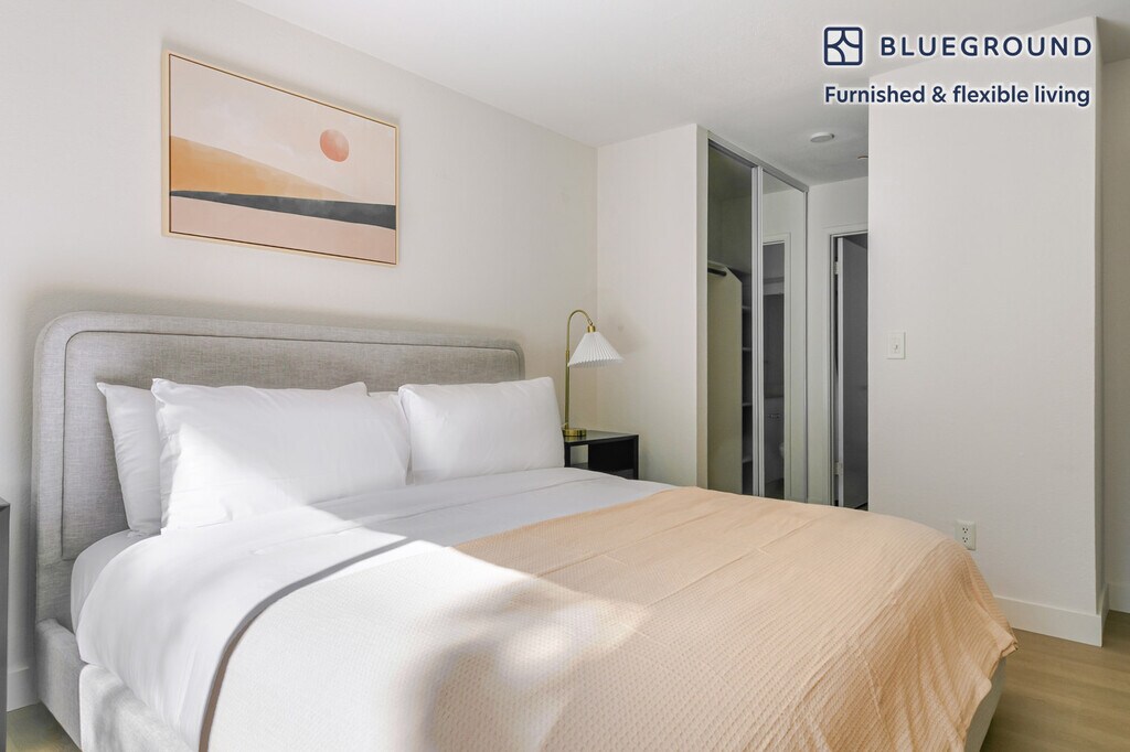 - Additional Property Details- Staged photos of matching layout and similar décor Imagery shows same floorplan and building, and similar décor as we finish photographing this new unit. Be the first to rent! Discover the best of Mountain View, with this two bedroom apartment in Shoreline West. It’ll be easy to simply show up and start living in this furnished apartment with its fully equipped kitchen, living room, and our dedicated, on-the-ground support. (ID #SFO9492A) The advertised rate of $4,190/month is the lowest available price, based on a 12 month(s) and 29 day(s) stay with a move-in date of November 9, 2025. Rates vary depending on the duration of stay, season, and other parameters. For exact pricing and additional pricing components, please visit our website and enter your desired move-in and move-out dates. The rate is applicable when billed upfront; it can be higher if billed in multiple payments. Brokers are welcome to reach out. Were you looking for an unfurnished lease? Try Blueground instead and upgrade from unfurnished to furnished living: - Furnished at rates comparable to unfurnished - No setup or furniture costs - save thousands - Move-in ready - save time, just bring your suitcase Designed with you in mind As with any Blueground apartment, you’ll find a thoughtfully designed space complete with beautiful furniture and a fully equipped kitchen in this two bedroom property. And, thanks to our superior quality mattresses, luxury linens, and towels, you can relax knowing you’ll always feel comfortably at home. When you’re ready for some fun, you can take in the Mountain View vibes or bring the entertainment to you with the premium wireless speaker or smart TV. This apartment also offers in-apartment laundry. Amenities Building amenities unique to this two bedroom apartment include an on-site: - Dryer - Washing machine - Parking - Pets allowed Arrival and ongoing support The entire apartment is yours to enjoy! Throughout your stay, you’ll have access to our Client Experience team through the Blueground App. You can schedule additional cleanings, submit maintenance requests, and view our neighborhood recommendations with just a few taps. We’ll share all details upon confirmation of your stay. Other things to note Photos show same floorplan and building, and similar decor as we finish photographing this new apartment. This Blueground apartment has flexible lease options, allowing you to book it for one month, a year, or more. Pets are welcome, though weight limits and breed restrictions apply and may incur fees. Parking is offered based on availability and is subject to a fee. Please keep in mind that this is a walk up building. We take great pride in ensuring every photo displayed is shot in our own units with our actual furnishings. That said, we regularly refresh our decor and furniture arrangement, which may differ from what’s pictured. [SI]