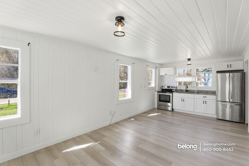 Comfortable living begins here in this lovely 2-bedroom, 1-bath home nestled in a peaceful, well-maintained neighborhood just minutes from community parks and town conveniences. Broad plank floors stretch across the open living and dining area, where abundant natural light and clean white walls create a bright, practical backdrop for your favorite furnishings. Your kitchen comes equipped with stainless steel appliances, abundant cabinet storage, and a functional layout that’ll make meal prep and cleanup more efficient. Both bedrooms offer flexible space for sleeping, working, or relaxing, and the full bathroom includes a tub/shower and tasteful tile that adds a bit of character without sacrificing simplicity. Step outside through the living space and into a covered patio / sunroom where you can enjoy morning coffee or an evening breeze. Positioned on quiet streets that foster a friendly, safe atmosphere, this home is close to Sam Atkins Park and Durham Joe Park, where green space, playgrounds, and outdoor recreation invite weekends outdoors. Nearby dining options include local favorites such as Parramore’s Too and Fiddler’s Steam House & Oyster Bar, and coffee shops like Calhoun Coffee fit easy weekend routines. Everyday errands are convenient with shops and services just a short drive away in Blountstown. *Up to two pets allowed. Pet weight limit is 20 lbs - if your pet exceeds this, please reach out to see if we can accommodate! *Our homes come as-is with all essentials in working order. Want upgrades? Request it through the Belong app, and our trusted pros will take care of the rest.