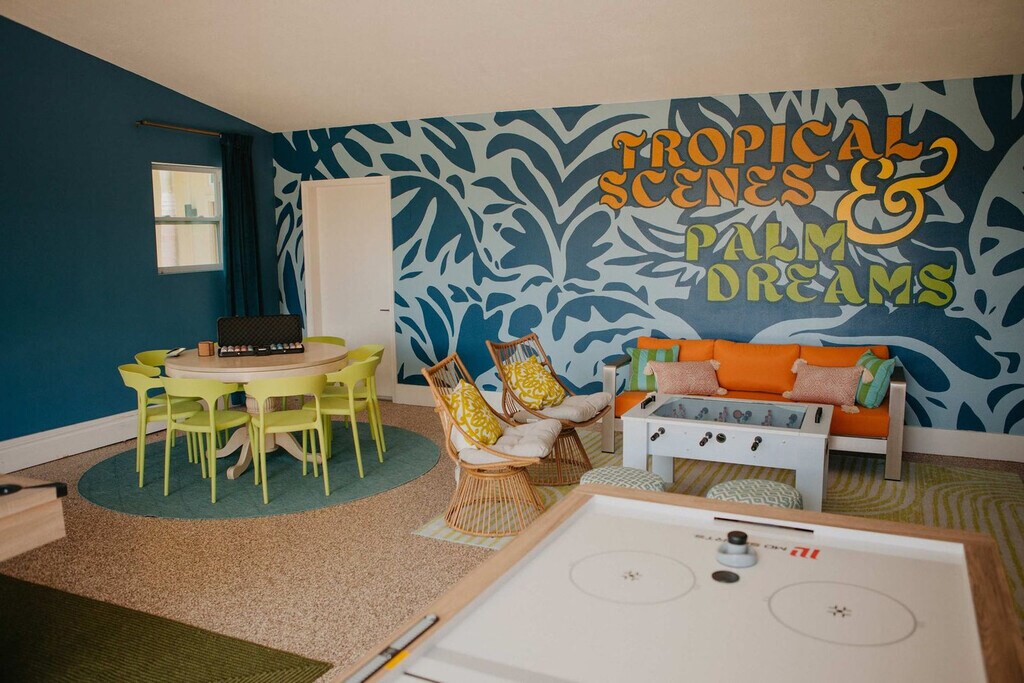 Feel at home in this 5-bedroom home in Bradenton, FL, offering everything you need for an amazing vacation. This chic, coastal retreat is thoughtfully designed with curated color and playful details. The home features a fully stocked kitchen with high-end appliances, a large refrigerator, ample cabinetry, a large island with high seating, and a coffee maker (Keurig and drip). Enjoy the living room with a 65” smart TV and large plush sofa. For entertainment, there's a game room with 2 arcade machines, a foosball table, a pool table, an air hockey table, a poker table, board games, and books and toys for kids. Outdoor amenities include a private heated pool, a hot tub, a fire pit, an outdoor bar and dining area with a TV, a BBQ grill, putt putt, a basketball hoop, corn hole, and yoga essentials. The heated pool fee is $100/night. The pool can be heated to about 20-25 degrees above the ambient temperature, and it must be heated for the entirety of your stay. At least a 3-day notice is required before your arrival if you'd like the pool heated. Located in a quiet Bradenton neighborhood, this home is just minutes from beautiful beaches, parks, museums, and local dining. Nearby attractions include Anna Maria Island Beach (6 miles), Bradenton Beach (7 miles), Siesta Key (20 miles), IMG Academy (6 miles), Premier Sports Campus at Lakewood Ranch (20 miles), Robinson Preserve (1 mile), and De Soto National Memorial (less than 1 mile). Enjoy nearby restaurants such as Pier 22, O’Bricks Irish Pub & Martini Bar, Tiramisu Ristorante Italiano, Riverhouse Waterfront Restaurant, and Sofra Kitchen Bar & Bistro. Check-in is at 4pm and check-out is at 10am. Parties are grounds for immediate removal. Manatee County / Bradenton City quiet hours are from 11 pm to 7 am. The gas grill and firepit are on 1-hour shut-off timers that can be reset each hour as needed. Guests must be 25 years or older to book this property. No pets are allowed. Parking is available in the driveway for a maximum of 6 cars; street parking is not allowed. [SI]