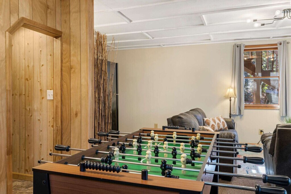 Feel at home in this 4-bedroom cabin nestled in the scenic Blue Ridge Mountains of Sapphire, NC. This rustic A-frame getaway offers everything you need for an amazing vacation, including an expansive deck with stunning views, a hot tub, sauna, and fire pit. Located just one mile from Gorges State Park, this cabin is a dream basecamp for hikers and outdoor enthusiasts. The Rainbow Falls Cabin comfortably accommodates up to 8 guests with its 4 bedrooms and 3 bathrooms. The chef’s kitchen is fully stocked with high-end appliances, a large refrigerator, and ample cooking space, perfect for preparing meals. Relax in the living room with a smart TV, large plush sofa, and an open floor plan, or enjoy the game room with a foosball table and board games. Up to 2 dogs are allowed for $125 per stay, but no cats please. Parking is available for 3 cars in the driveway, with no street parking allowed. Situated just one mile from Gorges State Park, this cabin offers easy access to over 56 miles of trails, stunning waterfalls, and abundant wildlife. Nearby attractions include the Rainbow Falls Trail, Turtleback Falls, and Silver Run Falls. Enjoy dining at local favorites like Mica’s Restaurant & Pub and The Library Kitchen & Bar. Check-in is at 4pm and check-out is at 10am. A 4-wheel drive vehicle is required to access the property, especially during rainy or snowy conditions. No parties are allowed, and violations may result in immediate termination of the stay. Guests must be 21 years or older to book this property. High-speed Wi-Fi is available throughout the cabin, ensuring you stay connected during your stay. [SI]
