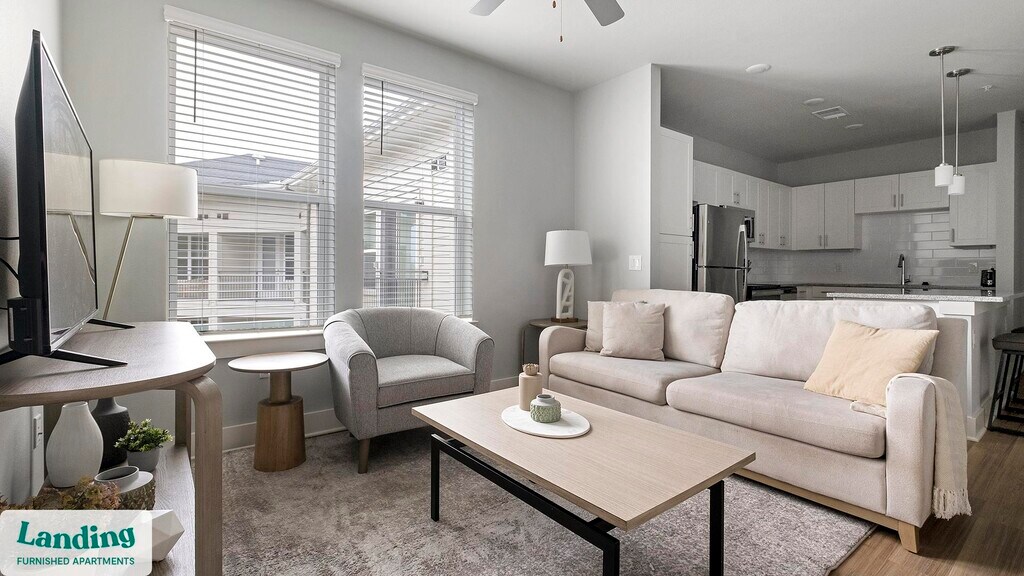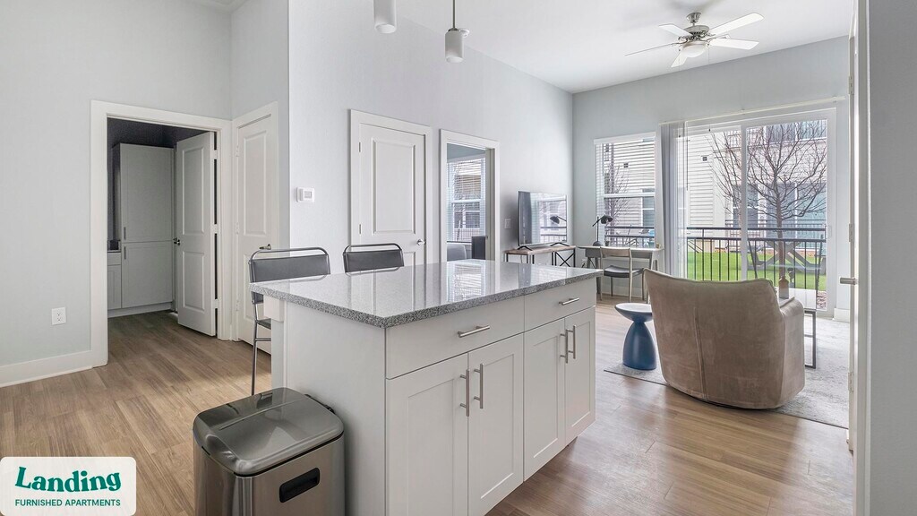 Landing offers flexible lease terms from weeks to months. Please always visit our website or contact us for the latest pricing & availability. Stay longer, save more: 6-Month Minimum base rent: starts at $1815/mo 12-Month Minimum base rent: starts at $1491/mo Landing offers flexible leases across a network of over 35,000 fully-furnished apartments throughout 375+ cities so you can rent on your terms, practically anywhere, and avoid the hassle of paying deposits or application fees. Visit to learn about all the benefits of a Landing membership, see our competitive up-to-date pricing, explore available apartments, take virtual tours, and make reservations online without jumping through traditional rental hoops. Landing's apartments at Flats at Hooper Hill are designed for comfortable, easy living, with the ability to stay as long as you like. Experience living with Landing Every apartment is outfitted with all the modern essentials including: custom-designed furnishings, a fully-equipped kitchen with deluxe stainless steel appliances, a gourmet coffee maker, premium linens, Smart TVs, and incredibly fast, reliable internet for working from home. When you live with Landing, you'll enjoy a hassle-free experience with the added benefit of 24/7 access to our dedicated member experience team. Some of the nitty-gritty: a background check and proof of income are required; we're completely smoke-free; bundled utility packages and pricing vary based on length of stay; pet-friendly options available; listed price reflects a 12-month minimum stay.