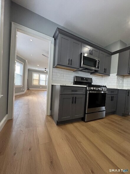 This remodeled 2 bedroom second floor apartment has everything you could want new flooring, recessed lighting, and new windows and doors, a high-efficiency heating and central air system, the kitchen has stainless steel appliances, there is new washer and dryer, and a luxury bathroom with a deep soaking tub.