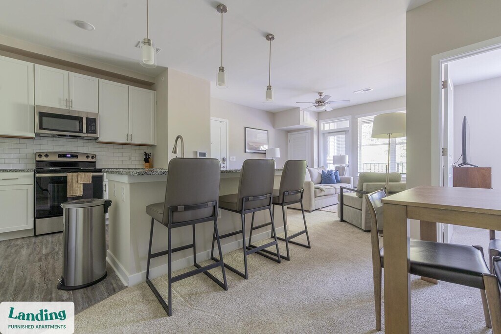 Landing offers flexible lease terms from weeks to months. Please always visit our website or contact us for the latest pricing & availability. Stay longer, save more: 6-Month Minimum base rent: starts at $2023/mo 12-Month Minimum base rent: starts at $1634/mo Landing offers flexible leases across a network of over 35,000 fully-furnished apartments throughout 375+ cities so you can rent on your terms, practically anywhere, and avoid the hassle of paying deposits or application fees. Visit to learn about all the benefits of a Landing membership, see our competitive up-to-date pricing, explore available apartments, take virtual tours, and make reservations online without jumping through traditional rental hoops. Landing's apartments at Abberly Liberty Crossing are designed for comfortable, easy living, with the ability to stay as long as you like. Experience living with Landing Every apartment is outfitted with all the modern essentials including: custom-designed furnishings, a fully-equipped kitchen with deluxe stainless steel appliances, a gourmet coffee maker, premium linens, Smart TVs, and incredibly fast, reliable internet for working from home. When you live with Landing, you'll enjoy a hassle-free experience with the added benefit of 24/7 access to our dedicated member experience team. Some of the nitty-gritty: a background check and proof of income are required; we're completely smoke-free; bundled utility packages and pricing vary based on length of stay; pet-friendly options available; listed price reflects a 12-month minimum stay.