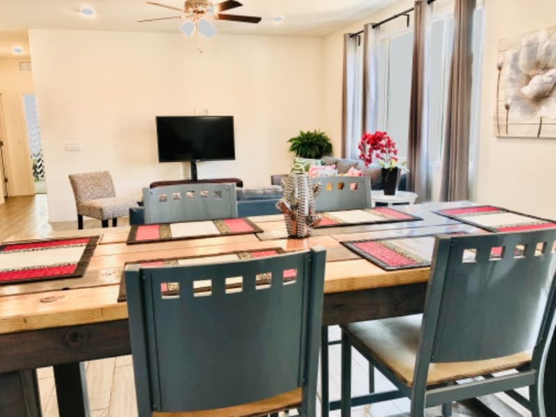 ID de propiedad: 331384 Hogar CON MUEBLES diseñado y decorado pensando en nuestros huéspedes. Totalmente funcional con un toque de lujo. Perfecto como hogar de invierno, visitas familiares, reubicación, eventos deportivos, asignaciones de trabajo temporales, entrenamiento de primavera, golf y todo lo que el Sun Valley tiene para ofrecer. Cerca de lugares al aire libre, tiendas y restaurantes. Barrio tranquilo con fácil acceso a las autopistas. ¡Sé nuestro huésped! Nuestro lugar está diseñado pensando en usted. Esperamos que nuestros huéspedes disfruten de una estadía perfecta y hagan todo lo posible por brindar una hospitalidad sureña excepcional. ¡Los huéspedes tendrán acceso a toda la casa! Está enclavado en una comunidad cerca de las cadenas montañosas Estrella & White Tank, ¡mucha diversión de senderismo! Hay una piscina comunitaria, un patio de juegos y senderos para caminar que nuestros huéspedes pueden disfrutar dentro de la comunidad. A tiro de piedra de la autopista I-10, bucle 101 y bucle 303: ¡es muy fácil desplazarse al trabajo! A un tiro de piedra del estadio de béisbol Goodyear, ¡el lugar perfecto para entrenar en primavera! A minutos del centro de la ciudad y de centros deportivos profesionales.