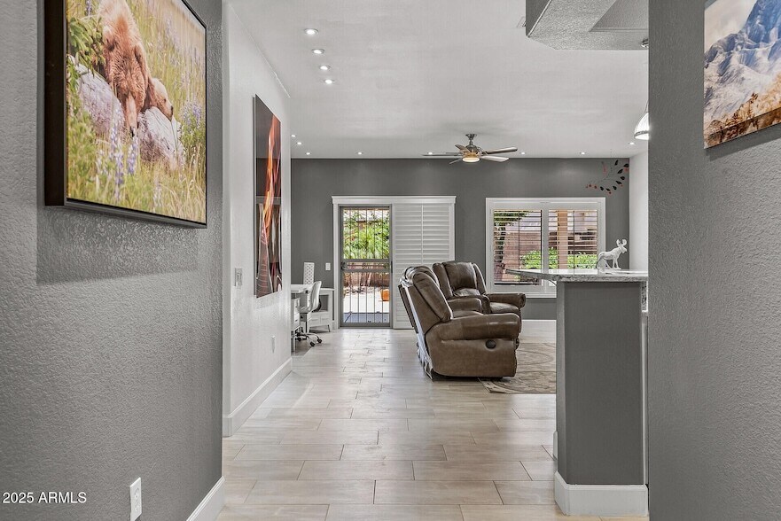 FURNISHED VACATION RENTAL. AVAILABLE JAN, FEB, MAR, AND APR 2026. 3 Month Minimum Rental. Well equipped Kitchen has granite and stainless with dining nook and snack bar with stools. Open Great Room features lots of down lights; comfortable leather furniture; 64 inch smart TV; internet wi-fi; computer desk; and great wall art! King bed in master. Queen bed in 2nd BR. Private walled back yard with patio set-up and BBQ grill. Clothes washer & dryer. Home is super clean! No Pets. No Smokers. One occupant must be age 45+The Grand is a lifestyle community - swim; golf; fitness centers; pickleball; activity clubs; fun stuff! Shopping, Restaurants, Medical close. Lots of events taking place in Phoenix in the Spring!