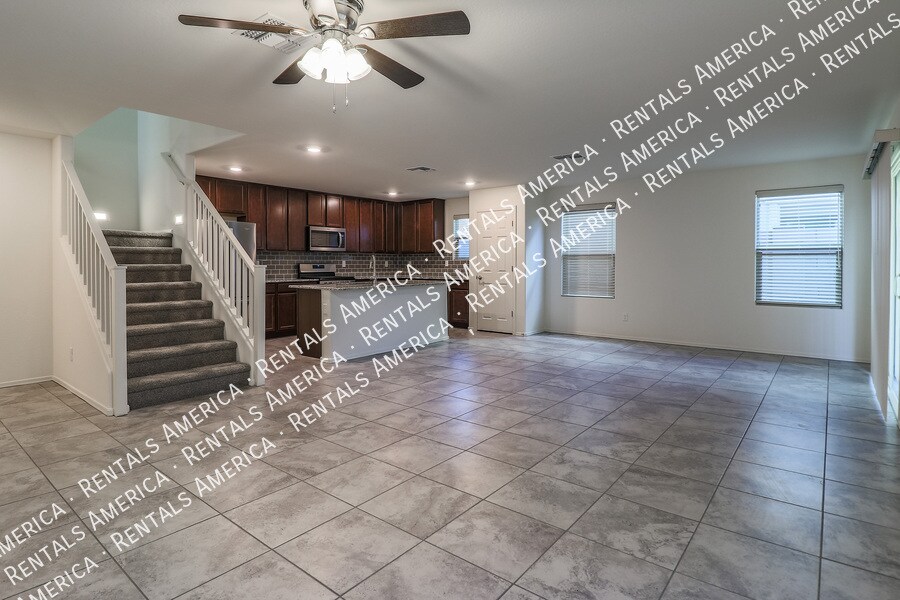 Home located just off the I-10 freeway and Sarival Ave. Two-story home with large, open-floor concept. Gorgeous, large tile downstairs & grey carpet upstairs. Kitchen has granite countertops, stainless steel appliances, gray subway tile backsplash, large island and pantry. Upstairs, you will find a spacious loft, washer & dryer, large master ensuite with multiple closets, two additional bedrooms and a second bathroom. The backyard is easy to maintain and has turf landscaping. Two car garage & an extra half bath downstairs. There is a community pool and park right across the street. This home wont last long! Dogs under 25 pounds allowed; sorry no cats. Available 05/01 or soon after!!! One Time Admin Fee: $300, Pet Deposit: $300/pet (if applicable), Rental Service Fee 2%. Resident Benefits package $39/month. Helping Heroes Discount Available! Carpet Ceramic Tile Community Pool Disposal Dogs Allowed Dryer Garage Pets Allowed Washer