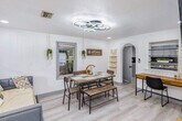 Feel at home in this spacious 4-bedroom, 2-bathroom Orlando getaway, complete with a cozy living area featuring a trundle bed, a fully equipped kitchen, and fast Wi-Fi. The home includes a flexible bonus room, making it perfect for families, groups of friends, or remote work. Located just 20 minutes from the airport in a quiet neighborhood, this pet-friendly home invites you to bring your furry friends along. Experience comfort and style in this fully remodeled one-story home, tastefully updated while preserving its historic charm. The home features four full bedrooms with plush queen beds and a flex room with a daybed that includes two twin beds. The living room also offers a daybed with two more twin beds, providing flexible sleeping options for up to 12 guests. Both bathrooms feature walk-in showers with modern touches, and the fully equipped kitchen is stocked with everything you need for home-cooked meals. Enjoy peaceful mornings or unwind in the evenings on the screened-in porch overlooking the backyard, and let kids and pets play safely in the fully fenced front and backyard. Laundry is made easy with an in-unit washer and dryer, and ample parking is available with a 1-car carport and plenty of driveway space. The property includes ample parking with a 1-car carport and plenty of driveway space. A pet fee applies for dogs, with a maximum of four dogs allowed per stay. The fee is $60 for each small dog and $100 for each large dog, and all dogs must be declared in advance. Centrally located, this property puts you just minutes away from popular attractions, shopping centers, restaurants, and entertainment options. Explore nearby Harry P. Leu Gardens, Downtown Orlando, the Orlando Science Center, Lake Baldwin Park, and Winter Park, all within a short drive. No parties or loud noise are allowed, and quiet hours are observed after dark to ensure a peaceful environment for all guests and neighbors. Smoking inside the property is strictly prohibited and will result in an automatic complaint. Check-in is at 4:00 PM and check-out is at 10:00 AM, with late check-out potentially resulting in additional fees. A security camera is installed outside near the entrance for safety and must not be tampered with. Dogs must be house-trained, non-aggressive, and crated if left alone indoors. They must be leashed when outside, and pets are not allowed on furniture. Owners are responsible for cleaning up after their pets both indoors and outdoors. The home sits on a crawlspace and is equipped with a septic tank, maintaining its original character while offering modern comforts. [SI]
