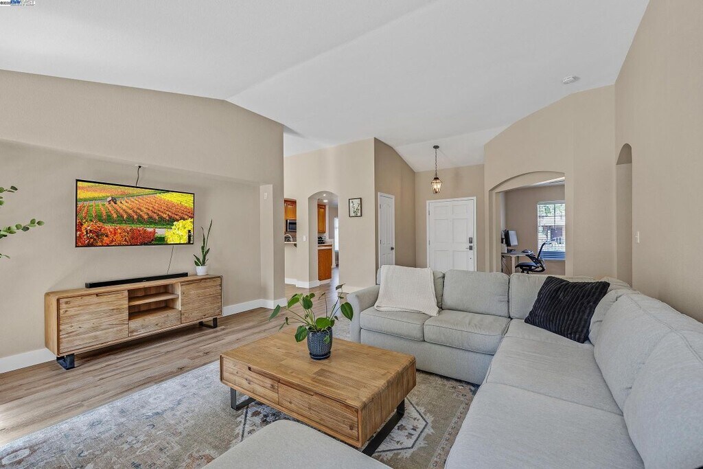 Elegant, updated and energy efficient single level home with private courtyard entry located on a corner lot in the desirable Laurelbrook neighborhood. The home features 2 primary suites and 3 full baths with front office room that can serve as fourth bedroom. Well appointed kitchen with Stainless steel appliances, Corian countertops and kitchen island. Spacious and nicely landscaped front and back yards with fruit trees. 3 car tandem garage with plenty of storage. Convenient location for commute, shopping, restaurants and schools. Costco nearby. Refrigerator, washer and dryer included. Solar savings and gardener included. Tenant pays for the utilities. This is also a no pet property and a minimum credit score of 680 is required. No applications will be considered until property is viewed in person.