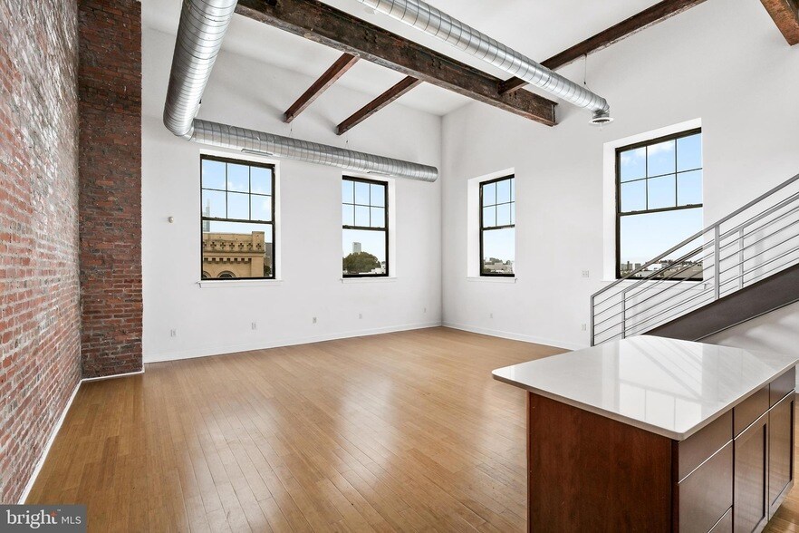 Available for mid to late September or October move in: Fantastic two bedroom in the beautifully renovated Exchange Condominiums in Francisville, the former Bell Telephone Exchange building. These condominiums combine modern design and finishes with original industrial details, and are rarely available for rent. This spacious two bedroom loft style unit, features over 1,200 square feet of living space with soaring high ceilings with beautiful custom skylights, charming exposed brick, duct work, and steel beams. Bamboo hardwood floors throughout, kitchen with all stainless steel appliances, maple cabinets, and granite counter tops with island breakfast bar. Located on the fourth floor in this secured entry, elevator building, this unit has fabulous natural light, large windows, 2 full marble baths, walk in closets, and in unit LAUNDRY. Common roof deck with outdoor furniture offers outdoor space with incredible skyline views! Great Francisville location is walking distance access to public transit, with the Girard Broad Street line stop just a short 3 blocks away. Walk to all that the Fairmount and Art Museum Areas have to offer - wonderful shops and cafes, museums, and more. An excellent value!! Pet friendly with a one time pet fee based on type/weight.