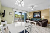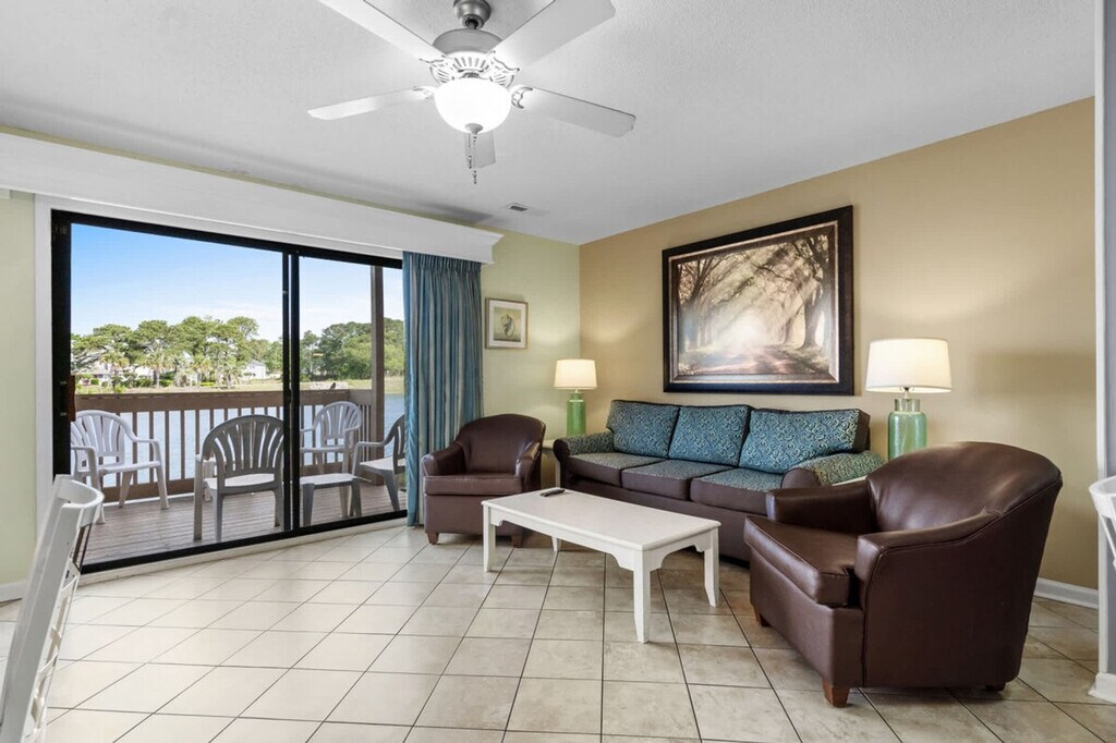 Feel at home in this stylish ground floor 2-bedroom condo, located just 1.5 miles from Surfside Beach. This spacious and comfortable condo features a fully stocked eat-in kitchen and a comfortable living room. The primary bedroom includes a king-size bed, a 40" flat screen TV with premium cable, an en suite bathroom, and a walk-in closet. The second bedroom has two comfortable double beds with a separate shower room and vanity/toilet room. Free parking is available on the premises. Experience the laid-back, family-friendly atmosphere of Surfside Beach while taking advantage of all the nearby restaurants and beach activities. The apartment is a quick 5-minute car ride to the Surfside Beaches. Guests must be 25 years of age or older to reserve. No smoking and no pets are allowed as per HOA regulations. Check-in is at 4:00 PM and check-out is at 10:00 AM. [SI]