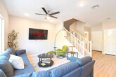 Feel at home in this spacious suite, just minutes from Surprise Stadium. This townhome has room for everyone to relax. This property features a fully equipped kitchen, plush bedding, a 65" Smart TV, comfortable couches, and a private outdoor area with a putting green and games. New stainless steel appliances, utensils, pots and pans, coffee mugs, a coffee maker and coffee filters, a kettle and tea bags, and wine glasses and an opener are provided. The bathrooms include a modern half-bathroom on the main level, a full bathroom upstairs with a glass shower door, and an en-suite full bathroom with a bathtub. There is also easy access to the garage and some fun games in the unit. The common area with a barbeque and pool is close to the unit. There is a $10 fee per guest after 5 guests. Early check-in or late check-out can be requested for a $30 fee. There is a $75 cleaning fee for any pets, and only small to medium sized dogs are allowed. Centrally located for all your activities planned for your trip to Surprise, the surrounding area of Surprise Stadium offers a blend of sports facilities, outdoor spaces, dining options, and entertainment venues. The Surprise Recreation Campus features baseball fields, soccer fields, basketball courts, and playgrounds. The Surprise Tennis and Racquet Complex hosts tournaments and offers tennis courts for recreational use. Surprise Community Park provides green spaces, picnic areas, walking trails, and a fishing lake. There are numerous dining options nearby, ranging from fast-food chains to casual dining restaurants, and several shopping centers and retail outlets are within a short driving distance. Visitors have access to various hotels and accommodations in the vicinity. No shoes are to be worn inside the home, especially on the carpeted areas. Quiet hours start at 10pm on weeknights and 11pm on weekends, ending at 7am. Evidence of pets inside the property will result in a $100 fine. Parties and/or large noisy social gatherings are prohibited, and there is a $250 surcharge for groups that are deceitful about the use of the house. Guests partying will be asked to vacate the property immediately without refund. Smoking of any kind is prohibited in the unit, and you will be fined $500 if you violate this policy. A surcharge of $100 per undeclared guest per night will be applied for unapproved guests. There is a $50 per hour penalty if you fail to check-out by 10am or by the agreed upon check-out time. Includes a comfortable office chair and a desk with a lamp. [SI]