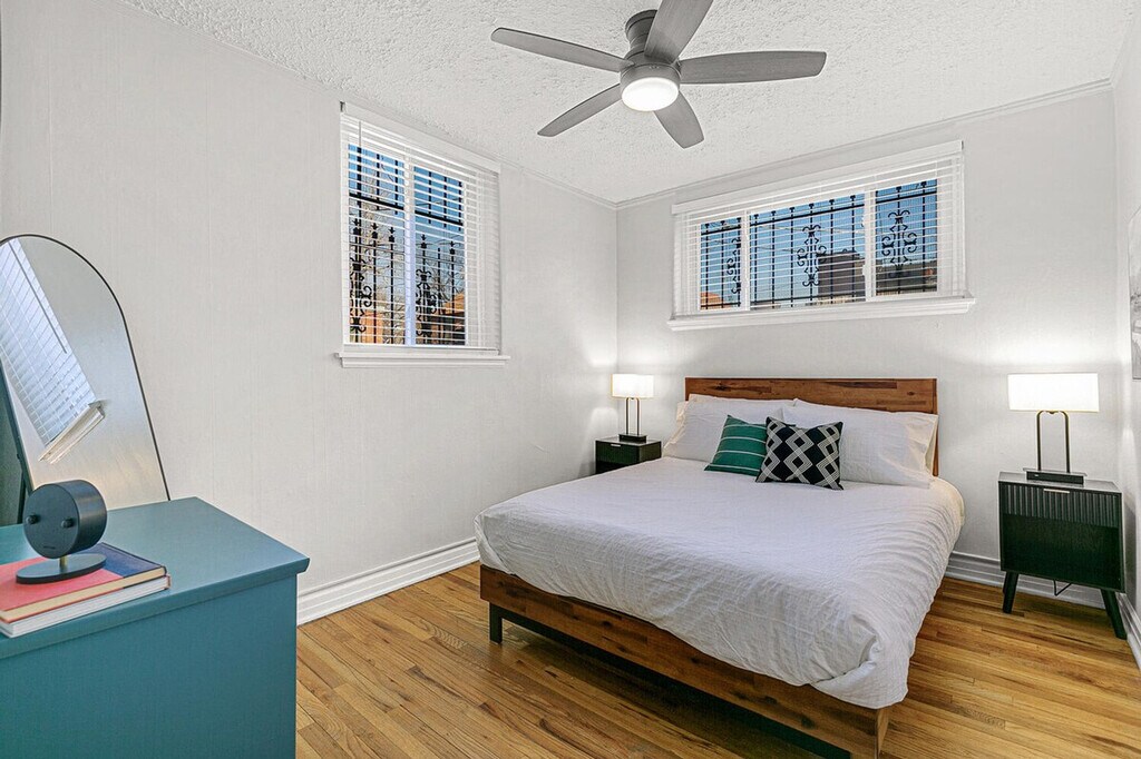 Unit 17 at 1666 Detroit St is a 600 sqft 2-bedroom apartment on the main floor, offering great natural light from large windows in all rooms. Feel at home in this inviting space, perfect for a roommate, guest bedroom, or home office. Enjoy a morning walk or jog around the lake at City Park right across the street and grill out in the sideyard. The apartment features a comfy queen bed and full bed with linens, a stocked kitchen, and plenty of closet space with additional storage available upon request. The safe and quiet neighborhood is nestled next to the park, providing a serene environment. All utilities and internet are included, valued at $150+/month. Fast internet with 300mbps download and 10mbps upload is available, though the shared router may or may not be in-unit. Free communal laundry is in the basement, and a propane grill is available for use. Garage parking is available for $150/month and dedicated off-street uncovered parking for $100/month. Paid parking spots are first come, first serve, so inquire about availability. Pet rent is $90 per dog per month, with a strict no cats policy. This apartment is ideally located less than a block from City Park, 5 minutes to Cheesman Park and Botanic Gardens, and 8 blocks to Sprouts Farmers Market. It's just 8 minutes to Cherry Creek Shopping District, 10 minutes to downtown Denver, RiNo, and LoHi, and 30 minutes to Red Rocks. Ski resorts are 1 hour and 30 minutes away. Nearby hospitals include St Joseph, Presbyterian St Luke’s, and Rose, all within 5 minutes, and UC Health University of CO and Children’s Hospital CO within 15 minutes. Check-out time is 10 AM, and failure to check out on time will incur a $50 fee for every additional 30 minutes. A lease agreement will be e-signed with all guests upon booking to confirm your stay. Noise disturbances should be minimized, especially for guests working from home. A warning will be given for any reported noise disturbances, and additional disturbances will result in eviction without refund. All properties are non-smoking and non-vaping, with violation resulting in damage fees. Pets are not allowed on furniture, and damage or excessive cleaning charges due to pets will be charged to the guest. The apartment is remote work-friendly, with fast internet and the option to use the second bedroom as a home office. [SI]