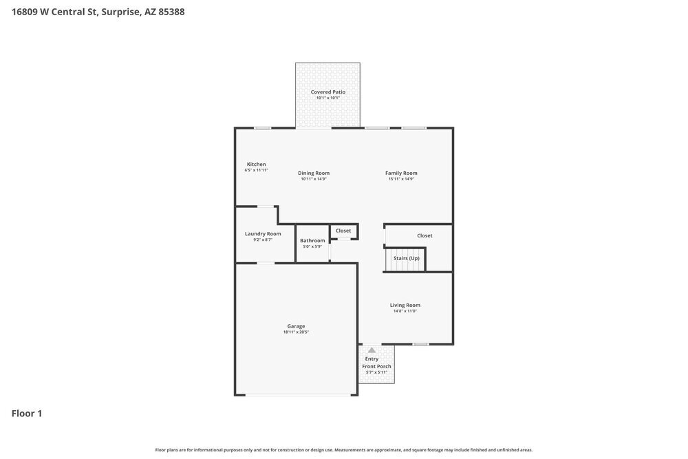 Está localizado en el barrio South Surprise, 16809 W Central St en el código postal 85388 de Surprise, AZ.