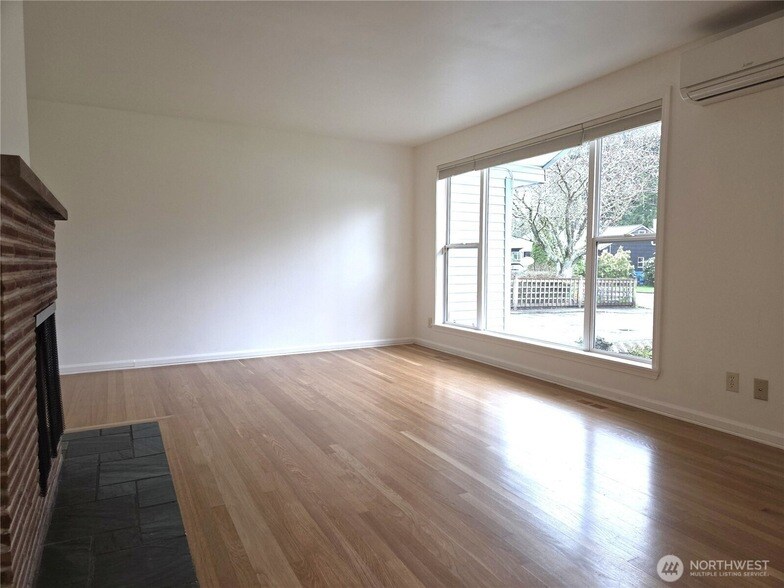 Duplex style 2 bedroom, 1 bath home in fantastic Shoreline location. Gleaming Oak hardwood floors throughout, wood burning fireplace, ductless mini-split heating and cooling and large picture vinyl windows for plenty of natural daylight. Spacious kitchen with granite slab countertops and tile floors. Full bathroom with heated tile floor, tile walk-in shower with glass enclosure and updated vanity. Huge fully fenced yard garden lights and storage sheds. Dedicated driveway parking for 2+ cars. Shared washer and dryer with MIL Unit. Pets allowed case by case with deposit. Available 4/17. Utilities separate from rent at a flat rate of $285/mo covers W/S/G/E.