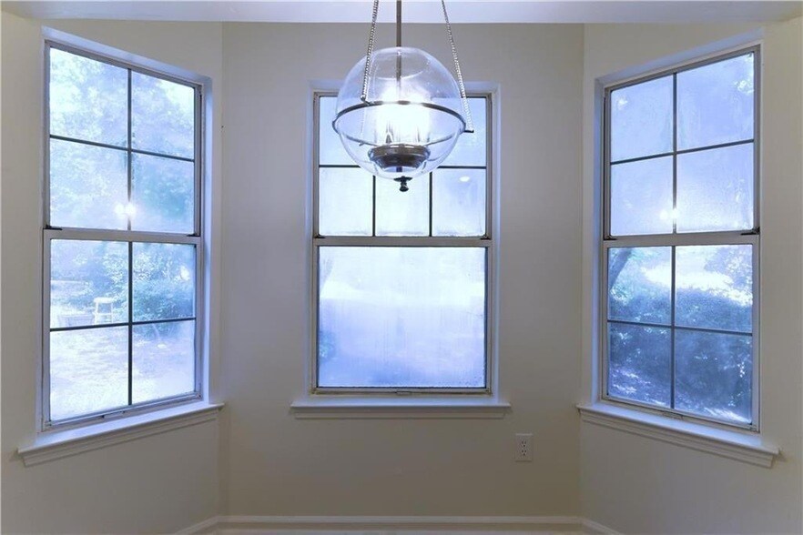 Welcome home to this updated 2 bedroom 2.5 bath end-unit townhome in a quiet Marietta community. Centrally located only 4 minutes to I-75 at GA-120 (Exit 265), KSU (7 minutes) the Marietta Square (10 minutes), Truist Park (12 minutes), and only 15 minutes to downtown Roswell. LVP flooring throughout both levels no carpet! The kitchen features granite counters and an eat-in Breakfast Nook with a bay window for lots of natural lighting. The Family Room features a Fireplace with a brick hearth and open Dining Area. Overlooking a serene wooded view, the oversized two-level deck provides additional entertaining area off the main level, while the second level deck offers a quiet place to relax off the Master Bedroom. The second upstairs bedroom also features its own full bath and walk-in closet perfect for a roommate arrangement! Convenient to shopping, dining, and top schools. 2-car parking pad in front of home. **APPLICATION REQUIREMENTS: Minimum 650 credit score, clean background report, and no past evictions. No smoking. Pets negotiable.** Available for move-in on 12/1/25.