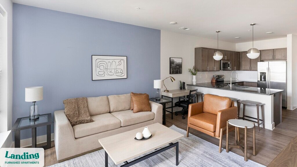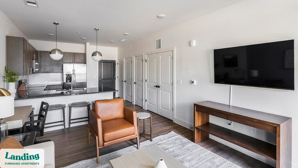 Landing offers flexible lease terms from weeks to months. Please always visit our website or contact us for the latest pricing & availability. Stay longer, save more: 6-Month Minimum base rent: starts at $1370/mo 12-Month Minimum base rent: starts at $1470/mo Landing offers flexible leases across a network of over 35,000 fully-furnished apartments throughout 375+ cities so you can rent on your terms, practically anywhere, and avoid the hassle of paying deposits or application fees. Visit to learn about all the benefits of a Landing membership, see our competitive up-to-date pricing, explore available apartments, take virtual tours, and make reservations online without jumping through traditional rental hoops. Landing's apartments at Livano Town Madison are designed for comfortable, easy living, with the ability to stay as long as you like. Experience living with Landing Every apartment is outfitted with all the modern essentials including: custom-designed furnishings, a fully-equipped kitchen with deluxe stainless steel appliances, a gourmet coffee maker, premium linens, Smart TVs, and incredibly fast, reliable internet for working from home. When you live with Landing, you'll enjoy a hassle-free experience with the added benefit of 24/7 access to our dedicated member experience team. Some of the nitty-gritty: a background check and proof of income are required; we're completely smoke-free; bundled utility packages and pricing vary based on length of stay; pet-friendly options available; listed price reflects a 12-month minimum stay.