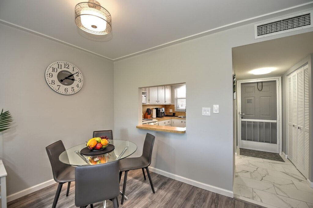 Kick back and relax in this calm, stylish 1BR penthouse. What I love about this space is that it is perfect for 2 people and is flooded with natural light. Being on the top floor (with elevator!) means no overhead neighbors, providing a quiet and peaceful retreat with beautiful southwest-facing views of the golf course. We have a foldable twin bed for a 3rd guest, but honestly, the sofa is very comfortable. Location & Convenience: Walking Distance: You are just a short stroll from the Target and Publix shopping centers, banks, and restaurants (The Tesla chargers are across Target). Costco: Only a 2-minute drive away! Beach Access: Clam Pass Beach is just 5 minutes away. Once you arrive, a fun golf cart tram service is available to take you through the scenic mangroves directly to the sand. The Space: - Top Floor w/ Elevator: Easily accessible and served by a community elevator. - Sun-Drenched Living: The living room and private balcony face southwest, ensuring plenty of Florida sunshine and great golf course views. - Fully Stocked Kitchen: Everything you need for a comfortable stay, including kitchenware, dishes, and utensils (please note: there is no dishwasher at this time). - Beach Gear Included: We provide beach chairs, a beach cart, and an umbrella—all conveniently stored in the unit’s storage locker. Resort-Style Amenities: As our guest, you have full access to: The oversized, heated pool. The renovated clubhouse, fitness center, sauna, and billiards room. Community tennis, pickleball, and bocce ball courts. On-site laundry facilities and private storage.