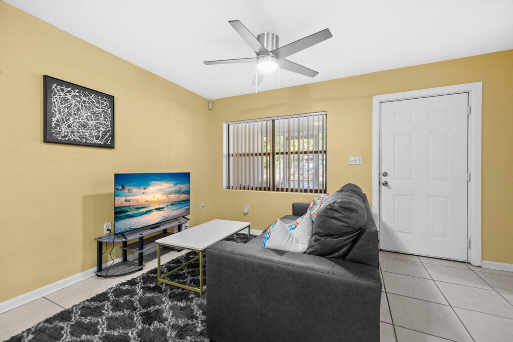 Feel at home in this comfortable 2-bedroom duplex in downtown, next to the Bed and Breakfast district. This home is just 2 miles from the University of Florida campus and Shands, and is conveniently located near restaurants and a park. This home features a washer and dryer, a comfortable living area, and a spacious dining area. The kitchen is fully stocked and comes equipped with a smart TV. A queen air mattress is available upon request. Walk to downtown; this is a perfect location! Smoking inside the home will result in a $250 fee. Quiet hours are from 9:30 pm to 8 am, and you may be asked to leave without a refund for violations. If caught with an unreported pet, there is a $200 fee. If dog waste is left behind, there is a $100 fee. [SI]