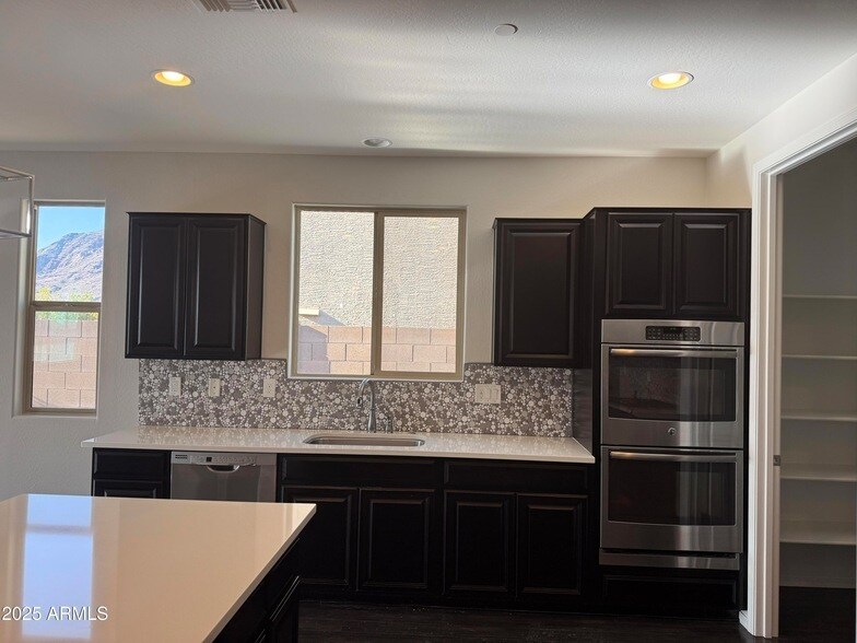 Enjoy breathtaking sunsets and views of the mountains with this private backyard. This 3 bedroom, 2 bath has a large kitchen with a custom backsplash, hardwood floors, an extra den and 2 car garage.