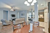 Centrally located in Mansfield, this inviting home is perfect for anyone seeking a fully stocked retreat with a beautiful private pool and patio. The 8-foot privacy fence in the backyard ensures a secluded atmosphere for relaxation and entertainment. This home offers everything you could desire in a hotel or other accommodations, including a full gym, kitchen, office with computer and printer, game room with ping pong table, smart TVs with Roku, sound systems, and a Bluetooth speaker on the patio. This home boasts all the amenities you could wish for during your stay. The backyard is a highlight, featuring a full-size pool with a 6-foot deep end, an 8-foot privacy fence with a locked gate, a covered patio with lounging furniture, a Bluetooth speaker in the overhead fan, a propane grill with utensils, and an elevated tanning deck with chairs. The front gym includes free weights, a treadmill, a Bowflex, and more for a complete workout. The office provides a PC and printer for your convenience. Dog-friendly home with a security doggy door. Pets are welcome with a fee of $30 per pet per night, with a maximum of two dogs under 20 lbs each. The garage is locked and not accessible during your stay. Pool service is provided weekly on Thursday afternoons. Perfectly situated for those attending a tournament at BLD, this home is also near the vibrant hotspot of Arlington, TX, with less than 30 minutes access to all its attractions. Nearby, you'll find the Big League of Dream Ballpark, Joe Pool Lake, Walnut Creek Country Club, Hawaiian Falls Water Park, Mansfield National Golf Course, and more. The home is in a lovely subdivision with plenty of sidewalks and paseos, offering easy access to shopping centers, food spots, and parks. Check-in is after 4:00 PM and checkout is at 10:00 AM, with self-check-in available via SmartLock. No parties or events are allowed unless explicitly granted privilege in writing, with a $500 fee for unauthorized events. Smoking is prohibited inside the house and within 6 feet of any doorway. Additional cleaning charges may apply for not picking up after pets. Pool safety is a priority, with no diving allowed and adult supervision required for children. The piano is not available for use. The front office is equipped with a desktop computer and printer for your use. Wi-Fi is available throughout the home, and the living room features a Samsung Smart TV with streaming and music apps, Roku, and a Bose sound system. The master bedroom also includes a TV with Roku and a Bose sound system. Small children and infants can be accommodated, but there are no specific child safety precautions in place. A closet contains a Pack n Play crib, a pop-up crib, a stroller, a dining table chair with an infant eating tray, and some toys. [SI]