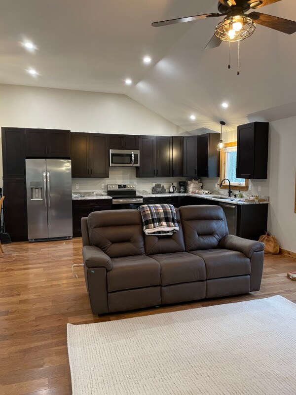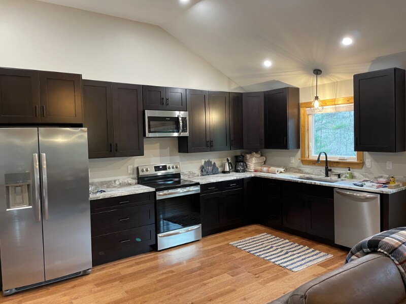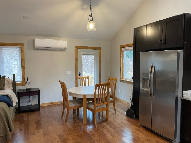 Property Id: 2187619 This studio loft is tucked into the hillside of a beautiful mountain forest. Newly constructed, our Loft features a full-sized kitchen and bathroom complete with granite countertops, modern cabinetry, and new appliances. Includes a king-sized bed, cozy living area, large TV, breakfast nook, and private entrance above a detached garage included for guests. Utilities (all included) are billed separately at $300/mo.