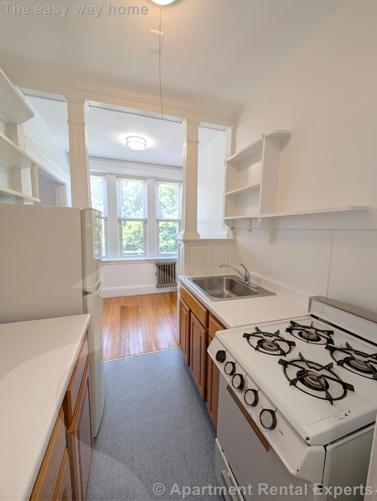 Large studio on the 3rd floor of charming brick building. Separate galley kitchen with space for small dining table. Also a bit of extra space big enough for small desk / dresser. Kitchen has good storage space and counter space. Unit gets great sunlight! App based laundry room onsite, no more quarters! Overall GREAT studio for the price. Short walk to Malden Center T stop. (Reference #180516)