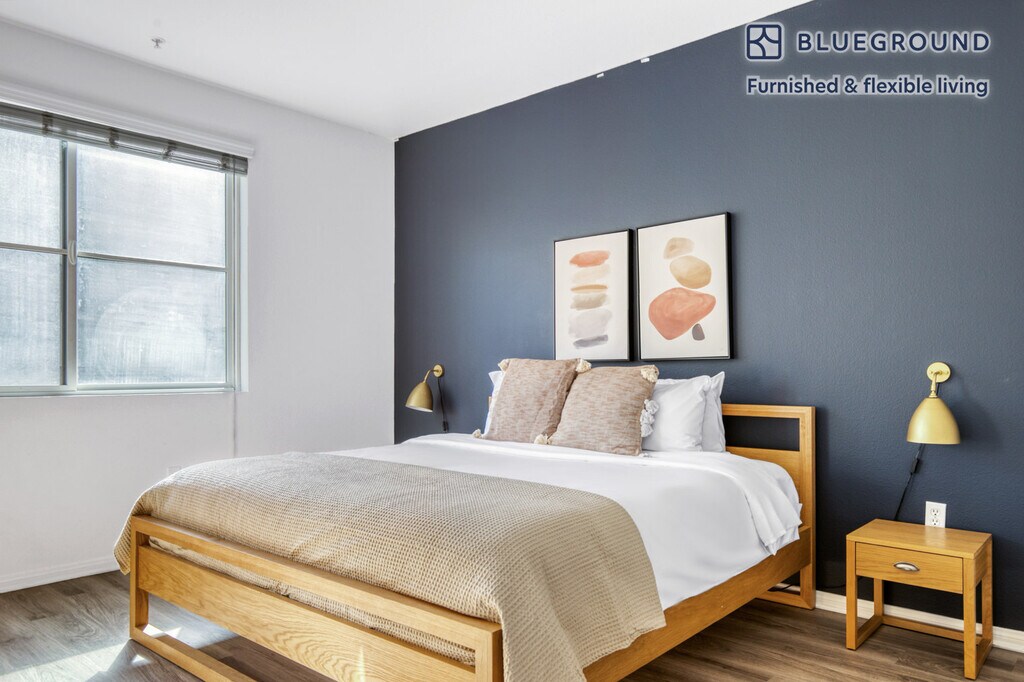Feel at home wherever you choose to live with Blueground. You’ll love this roomy Hollywood furnished two bedroom apartment with its modern decor, fully equipped kitchen, and cheery living room. Ideally located, you’re close to all the best that Los Angeles has to offer! (ID #LAX200) The advertised rate of $2,770/month is the lowest available price, based on a 1 month(s) and 27 day(s) stay with a move-in date of November 20, 2025. If you’re looking for a 1-year stay, the rate is $3,260/month. Rates vary depending on the duration of stay, season, and other parameters. For exact pricing and additional pricing components, please visit our website and enter your desired move-in and move-out dates. The rate is applicable when billed upfront; it can be higher if billed in multiple payments. Brokers are welcome to reach out. Were you looking for an unfurnished lease? Try Blueground instead and upgrade from unfurnished to furnished living: - Furnished at rates comparable to unfurnished - No setup or furniture costs - save thousands - Move-in ready - save time, just bring your suitcase Designed with you in mind Thoughtfully designed with bespoke finishes, modern furnishings, and a fully equipped kitchen, you’ll enjoy that “I’m home” feeling with this Blueground apartment. Whether you’re lounging in your charming living room streaming the latest and greatest entertainment on the smart TV or premium wireless speaker, or getting some well-earned rest on the superior quality mattress with luxury linens, you’ll fall in love with everything this Hollywood apartment has to offer. This apartment also offers in-apartment laundry. Sleeping arrangements King Bed, 70.8in/180cm Queen Bed, 63in/160cm Amenities Building amenities unique to this two bedroom apartment include an on-site: - BBQ Area - Dryer - Elevator - Swimming pool - Washing machine - Lounge - Parking - Pets allowed Arrival and ongoing support The entire apartment is yours to enjoy! Throughout your stay, you’ll have access to our Client Experience team through the Blueground App. You can schedule additional cleanings, submit maintenance requests, and view our neighborhood recommendations with just a few taps. We’ll share all details upon confirmation of your stay. Ideally Located Located in LA’s most famous neighborhood, this Hollywood furnished home is an inviting place for everyone who is looking for a stars’ tour on and off the Walk of Fame. The list of things to do in Hollywood is endless. From fancier restaurants on Hollywood Boulevard to the hippest clubs on Sunset Boulevard, the area promises an unforgettable time. Take a tour of the most popular music venues, including the Hollywood Palladium and the home of the Oscars, and don't miss a chance to explore over a century of Hollywood history and witness more in the making at the Studios. Other things to note Building amenities may have an extra cost. This Blueground apartment has flexible lease options, allowing you to book it for one month, a year, or more. Pets are welcome, though weight limits and breed restrictions apply and may incur fees. Parking is offered based on availability and is subject to a fee. We take great pride in ensuring every photo displayed is shot in our own units with our actual furnishings. That said, we regularly refresh our decor and furniture arrangement, which may differ from what’s pictured. Also note - There have been reported instances of homeless populations nearby - This apartment's central location means it can be noisy at times [SI]