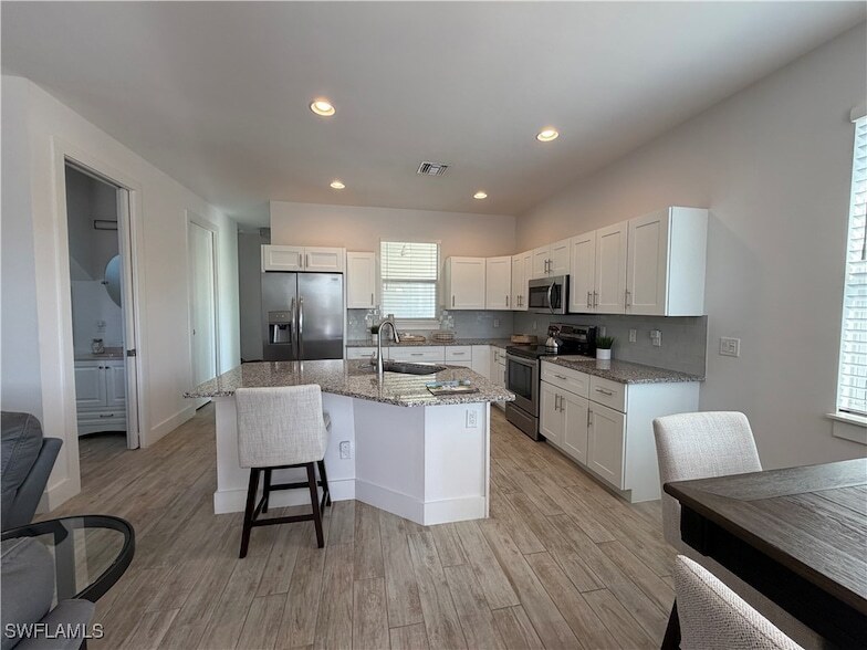 This modern 3BR + den / 2.5BA home offers an open floor plan, bright living areas, and a contemporary kitchen with stainless steel appliances and sleek cabinetry. Tile flooring throughout the main living spaces, spacious bedrooms, and a large primary suite. Located minutes from the Bayshore Arts District, Celebration Park, Naples Botanical Garden, downtown Naples, and the beautiful Naples beaches. Easy to show!