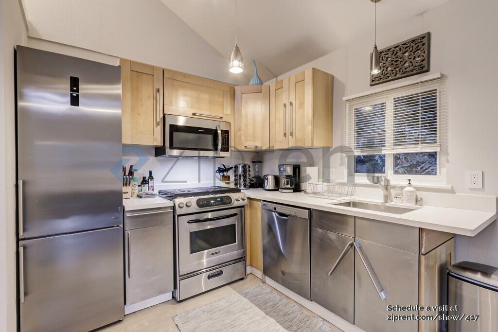 This property is available. Please inquire on this site to schedule a showing. Nestled in the serene redwoods of Guerneville, CA, this charming home at 17363 Park Ave offers a tranquil retreat with modern comforts. The exterior is inviting with its quaint facade and lush surroundings, perfect for those seeking a peaceful escape. Step inside to discover a bright and airy open-plan living area, featuring high ceilings with exposed beams and large windows that flood the space with natural light. The well-appointed kitchen boasts stainless steel appliances and sleek cabinetry, making meal preparation a delight. Adjacent to the living area, the dining space provides an ideal setting for intimate dinners or casual gatherings. The property includes a spacious primary suite that serves as a cozy sanctuary, complete with ample storage space and serene views of the surrounding forest. The contemporary bathroom features a stylish stone sink and a beautifully tiled shower, enhancing the home’s modern aesthetic. Additional amenities include a convenient in-unit washer and dryer, ensuring everyday tasks are a breeze. Outside, the deck offers a peaceful spot to unwind and enjoy the breathtaking views of the towering redwoods, making this home a perfect blend of comfort and nature. Available: NOW Heating: HeatPump Cooling: Central Appliances: Refrigerator, Range Oven, Microwave, Dishwasher Laundry: In Unit Parking: Off Street, 1 spaces Pets: Dogs Allowed, Cats Allowed Security deposit: $2,050.00 Included Utilities: Water, Sewage Additional Rent/Person for Utilities: $50.00 Additional Deposit/Pet: $500.00 Disclaimer: Ziprent is acting as the agent for the owner. Information Deemed Reliable but not Guaranteed. All information should be independently verified by renter. This property is listed by Ziprent on behalf of the property owner for tenant placement services only.