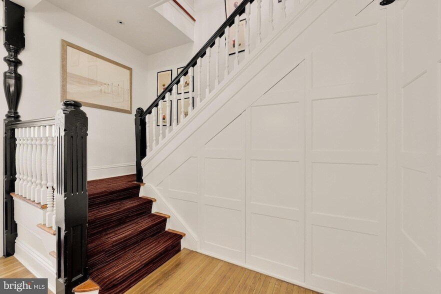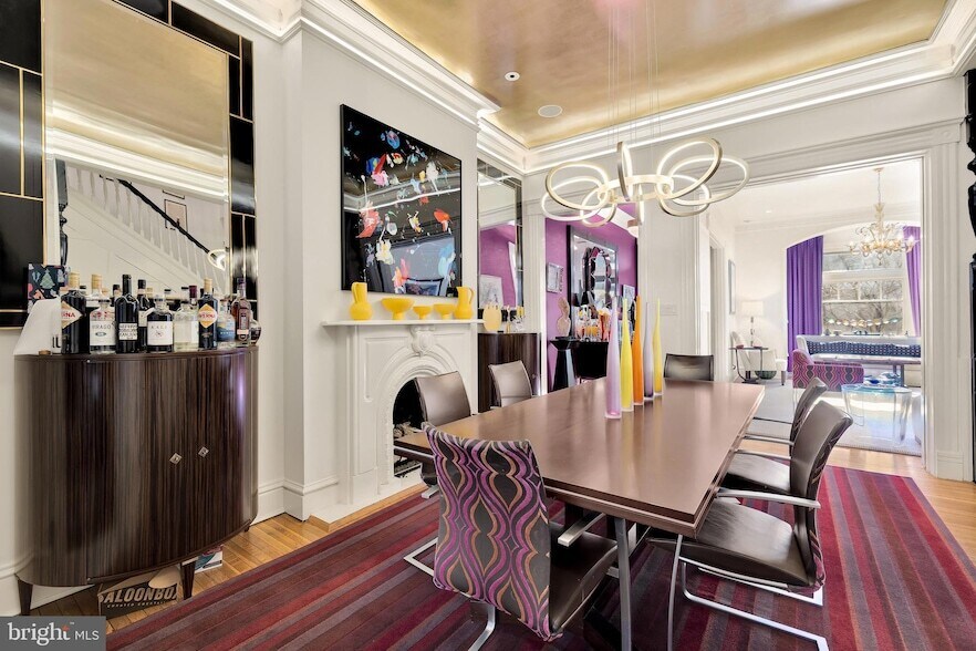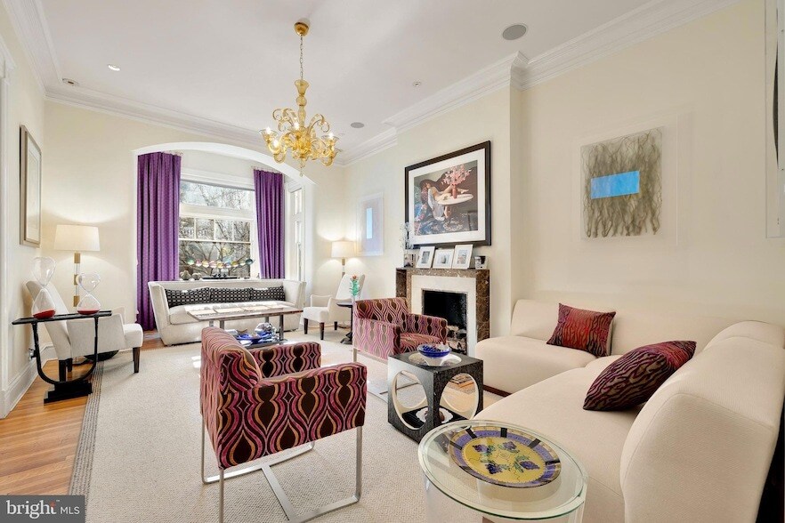 Originally built in 1885, this historic Victorian row home seamlessly blends timeless architecture with modern design. Spanning over 3,300 square feet, the home features 4 bedrooms, 2.5 bathrooms, and elegant bay windows that flood the interiors with natural light. The main level offers a spacious dining room and living room, perfect for both daily living and entertaining. The designer kitchen stands out with sleek matte black cabinetry, ample storage, high-end appliances, and a full-size wine fridge.The first upper level includes a secondary living room, private office, full bedroom, and full bath. The top floor features the primary suite with a generous walk-in closet and en-suite bath, along with a third bedroom.Outdoors, a two-car parking garage is a rare and valuable amenity in the heart of Dupont Circle. Ideally located, this home offers unbeatable access to neighborhood restaurants, shops, parks, and Metro, all while enjoying the charm of a tree-lined, historic block.