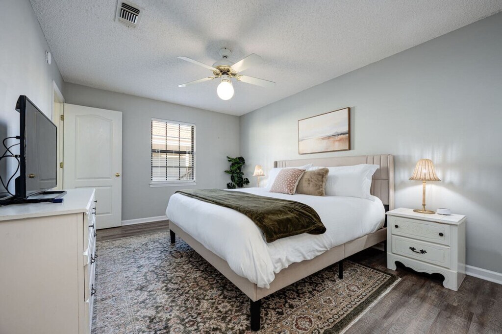 Feel at home in this 1-bedroom condo in Panama City Beach, a quick 5-minute stroll from the beaches and a 5-minute drive to Pier Park. This condo features two HDTVs, a patio with lounge chairs, and a fully equipped kitchen with a full-size refrigerator, oven, microwave, stove, cutting board, knife set, cooking spoon, tongs, ladle, utensils, pots, pans, paper towels, garbage bags, plates, bowls, mugs, glasses, silverware, and a dishwasher with dishwashing tabs. Enjoy access to 4 swimming pools and a hot tub. Parking is available for 2 vehicles next to the property. Pets are allowed for long-term guests (staying a minimum of 60 days). Up to 2 non-aggressive dogs are welcome. Wristbands are required for all guests 6 years and older, and a vehicle parking pass is required for each vehicle. These must be purchased from Property Management upon arrival. The guest cost for each wristband is $20.00. The cost for each parking pass is $25.00 per vehicle (maximum two vehicles) not to exceed 10 days. An Extended Stay Guest will pay $25.00 per 10-day period with a maximum of $50.00 per six (6)month period. Enjoy the ease of walking less than 5 minutes to nearby restaurants. A short 10-minute drive will land you at entertainment hotspots such as Gulf World Marine Park, SkyWheel, and Swampy Jack's Wongo Adventure. Bike the Beach PCB is conveniently located just a 4-minute drive away, offering bike rentals to explore destinations such as Frank Brown Park, Scott Field Park, and Russel Fields Pier. Check-in time begins at 4 pm, and check-out time is at 10 am. Parties and additional guests are not permitted. [SI]