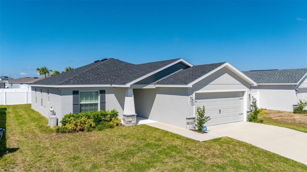 Be the first to live in this stunning 4-bedroom, 2-bathroom home, built in 2024! Designed with modern style and comfort in mind, this residence offers a spacious open-concept floorplan with a bright living area that flows into the dining space and kitchen. The chef s kitchen features sleek stone countertops, ample cabinetry, and a large island perfect for cooking and entertaining. The primary suite includes a walk-in closet and private en-suite bathroom, while three additional bedrooms provide plenty of room for family, guests, or a home office. Enjoy the peace of mind that comes with brand-new construction, including energy-efficient features and the latest finishes. The backyard offers outdoor space for relaxation or weekend gatherings. Conveniently located in a growing Haines City community, this home is close to shopping, dining, schools, and provides easy access to major highways.