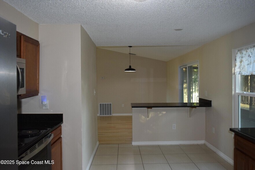 Located in the desirable NW section of Palm Bay, this 3-bedroom, 2-bath home offers a light and airy open floor plan with a combined living and dining area. The fully equipped kitchen features stainless steel appliances and plenty of counter space and breakfast bar perfect for cooking and entertaining.The ample-sized primary bedroom includes a private bath with a nice step-in shower. Two additional guest bedrooms and full bath. Enjoy the Florida lifestyle from the screened rear porch, and appreciate the added privacy of a fenced backyard with fruit trees. Additional conveniences include a 1-car garage and laundry hookups.Close to major roads, shopping, and schools this home offers comfort, convenience, and a great location!