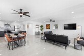 Relax in this private 3-bedroom, 2-bathroom home featuring a cozy fireplace, full kitchen, fast Wi-Fi, and private entrance—perfect for families, groups, or remote work. Nestled in a quiet quadruplex just 30 minutes from the airport, this pet-friendly property invites you to bring your furry friends along. The home offers a living room, dining area, and a fully equipped kitchen with a fridge and microwave. Enjoy the shared, unfenced patio and shared laundry facilities with other guests. Parking is available for up to two cars, shared with other units. Pets are welcome with a fee of $60 for each small dog and $100 for each large dog. A maximum of four dogs per stay is allowed, and all dogs must be declared in advance. Parking is free and shared with other units, limited to two compact cars per unit. Centrally located, you'll be just minutes away from major attractions, restaurants, and entertainment options. Explore Oviedo on the Park, Black Hammock Adventures, Lukas Nursery and Butterfly Encounter, Downtown Orlando, and the Central Florida Zoo and Botanical Gardens, all within a short drive. No parties or loud noise are allowed, and quiet hours are observed after dark to ensure a peaceful environment for all guests and neighbors. Smoking inside the property is strictly prohibited and will result in an automatic complaint. Check-in is at 4:00 PM and check-out is at 10:00 AM, with late check-out potentially resulting in additional fees. A security camera is installed outside near the entrance for safety, and it complies with privacy policies. Please do not unplug or tamper with it during your stay. A comfortable workspace is available, making it easy to stay productive during your stay. The home is equipped with fast Wi-Fi, perfect for remote work. [SI]