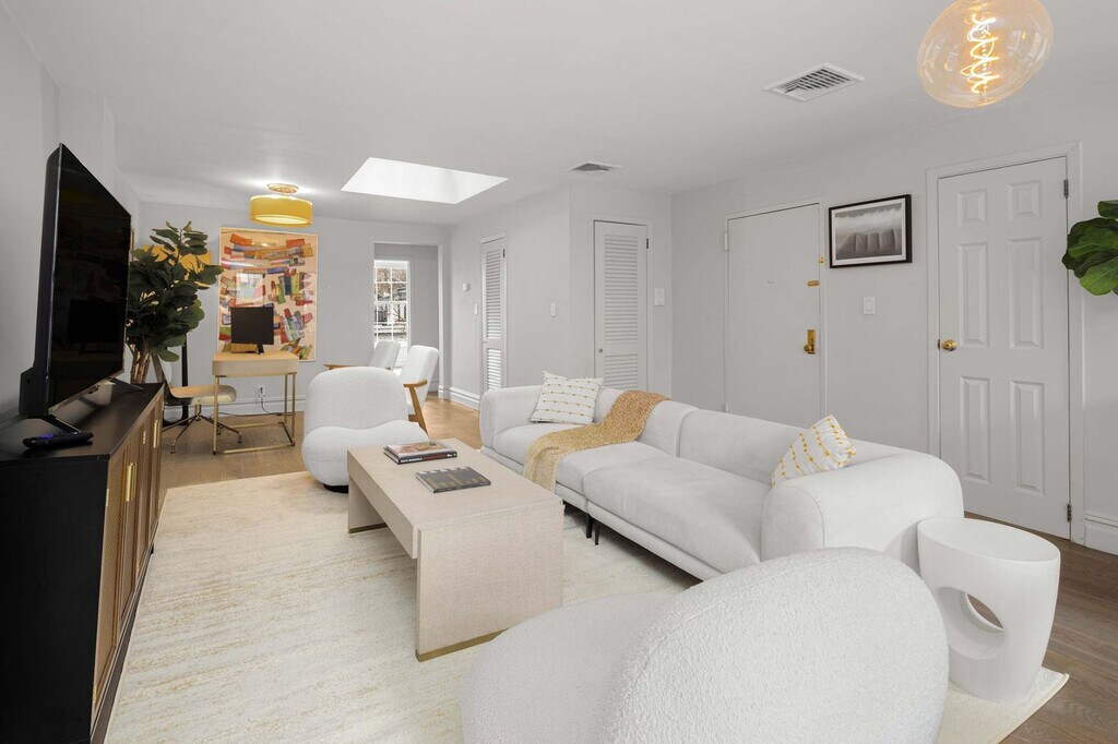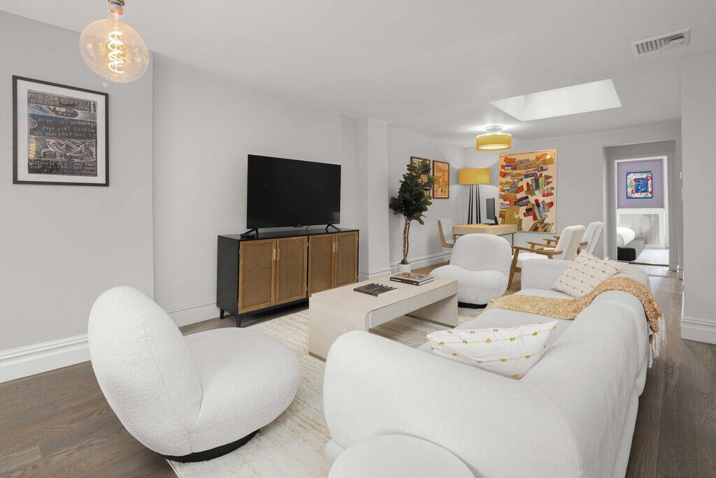This beautifully renovated 2-bedroom, 1,250 sq ft floor-through apartment is located in a historic Greenwich Village townhouse. Nestled on a quiet, tree-lined street, you’re just steps away from SoHo, offering a blend of tranquility and vibrant city life. The apartment features a wide, open-plan layout, with a spacious kitchen, living, and dining area, making it perfect for entertaining. Windows flood the space with natural light, while wide-plank hardwood floors add warmth and elegance throughout. The king-sized master bedroom and queen-sized second bedroom offer comfort and ample space. Enjoy ultra-luxe linens, blazing fast WiFi, and a fully furnished space that’s move-in ready. For added convenience, the apartment includes an in-unit washer and dryer, making laundry a breeze. The renovated kitchen is equipped with stainless steel appliances, including a cooking range, microwave, and a countertop ideal for casual dining or entertaining. Haus' concierge service can coordinate cleanings, private events, and more for guests. We're able to schedule private chefs, excursions, and more and just ask us when you book and we'll be happy to accommodate your preferences. Utilities for this unit are included in the listed price (wifi, electric, heat, etc). Excessive use of A/C (exceeding $250/mo) will be billed back to guests after move-out. Located just two short blocks from Washington Square Park and one block from SoHo’s fine dining and boutique shopping, this apartment offers an ideal location with easy access to the best of the city. Smoking is not allowed on the property. [SI]