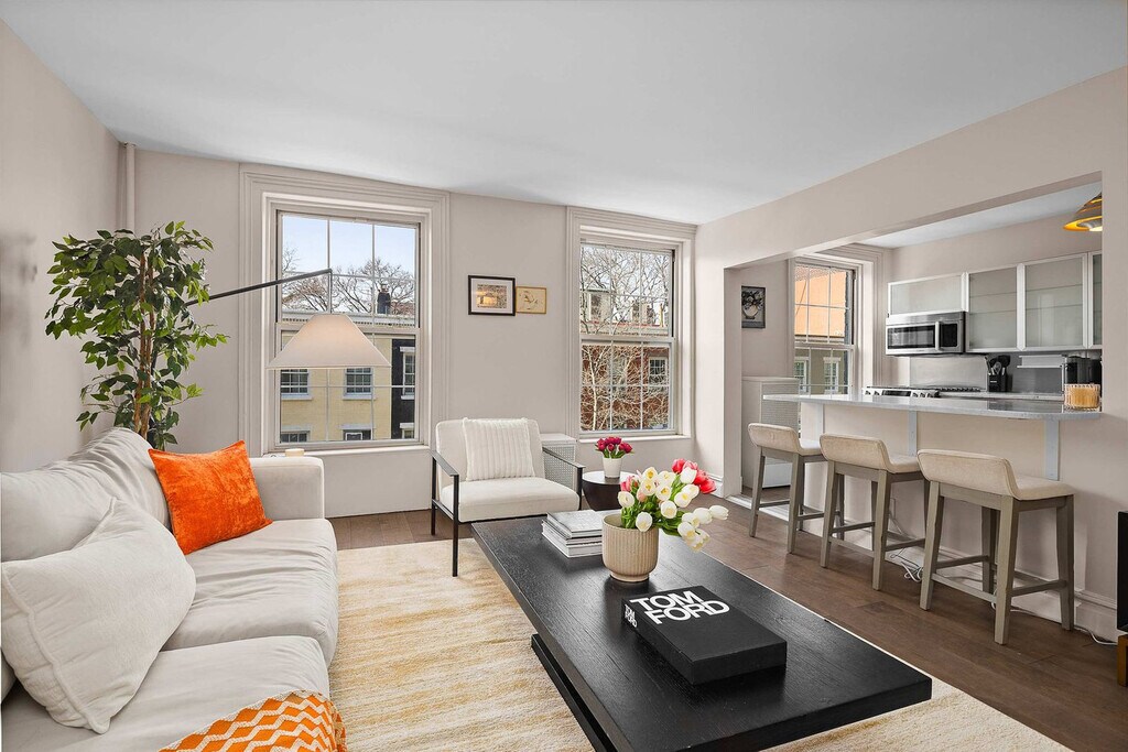 Welcome to a beautiful 1-bedroom loft located in the heart of Greenwich Village. This fully furnished, floor-through apartment is flooded with natural light and features high ceilings, designer furniture, and one-of-a-kind art. Spanning over 1,250 square feet, this thoughtfully designed loft offers a private oasis for the discerning traveler. As you enter the space, you're greeted by an oversized living room featuring comfortable furniture from Restoration Hardware and other similar brands. Art from the owner's personal collection adorns the space, creating an opportunity to live amongst stunning works of art. A walk-in kitchen and separate dining area complement the apartment's main space. The oversized bedroom features a queen-sized bed and plush mattress, as well as a desk and monitor for those working from home. Featuring soft lighting and hotel-quality linens, the bedroom provides an ideal setting for unwinding after a long day. The newly renovated and windowed bathroom houses the apartment's washer-dryer. This unit offers business-speed Wi-Fi, as well as a Nespresso machine and other modern conveniences. Haus' concierge service can coordinate cleanings, private events, and more. Private chefs and excursions can be scheduled upon request. Utilities for this unit are included in the listed price, but excessive use of A/C exceeding $250 per month will be billed back after move-out. Smoking is not allowed on the property. [SI]