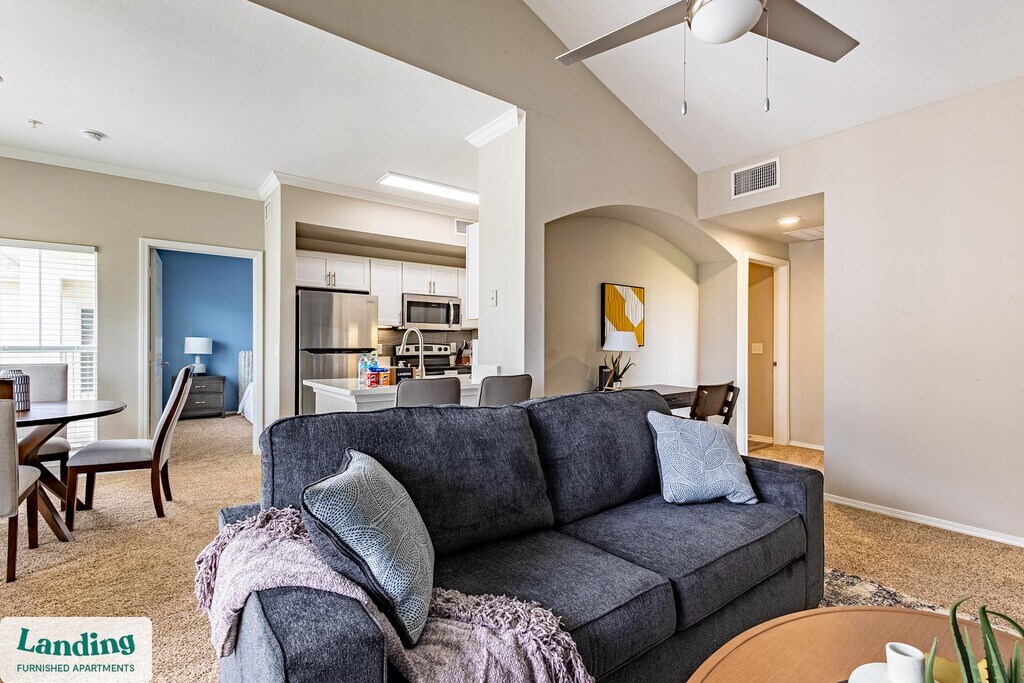 Landing offers flexible lease terms from weeks to months. Please always visit our website or contact us for the latest pricing & availability. Stay longer, save more: 6-Month Minimum base rent: starts at $2185/mo 12-Month Minimum base rent: starts at $1928/mo Landing offers flexible leases across a network of over 35,000 fully-furnished apartments throughout 375+ cities so you can rent on your terms, practically anywhere, and avoid the hassle of paying deposits or application fees. Visit to learn about all the benefits of a Landing membership, see our competitive up-to-date pricing, explore available apartments, take virtual tours, and make reservations online without jumping through traditional rental hoops. Landing's apartments at Watersedge are designed for comfortable, easy living, with the ability to stay as long as you like. Experience living with Landing Every apartment is outfitted with all the modern essentials including: custom-designed furnishings, a fully-equipped kitchen with deluxe stainless steel appliances, a gourmet coffee maker, premium linens, Smart TVs, and incredibly fast, reliable internet for working from home. When you live with Landing, you'll enjoy a hassle-free experience with the added benefit of 24/7 access to our dedicated member experience team. Some of the nitty-gritty: a background check and proof of income are required; we're completely smoke-free; bundled utility packages and pricing vary based on length of stay; pet-friendly options available; listed price reflects a 12-month minimum stay.