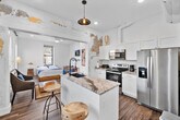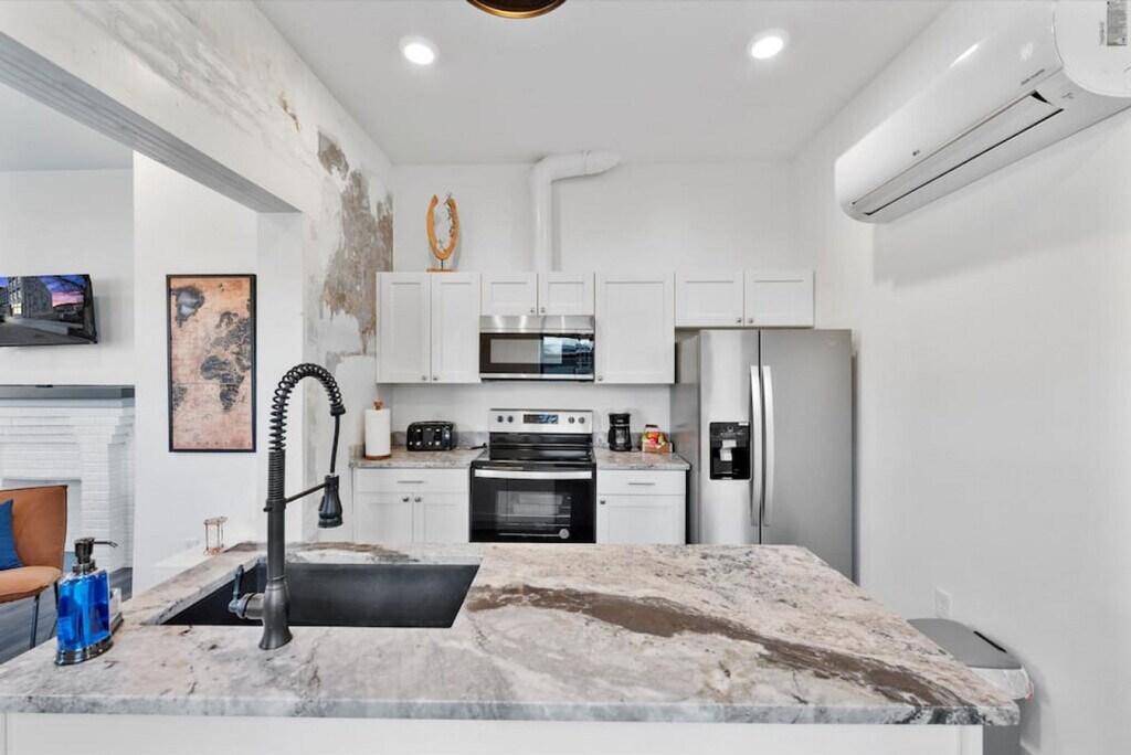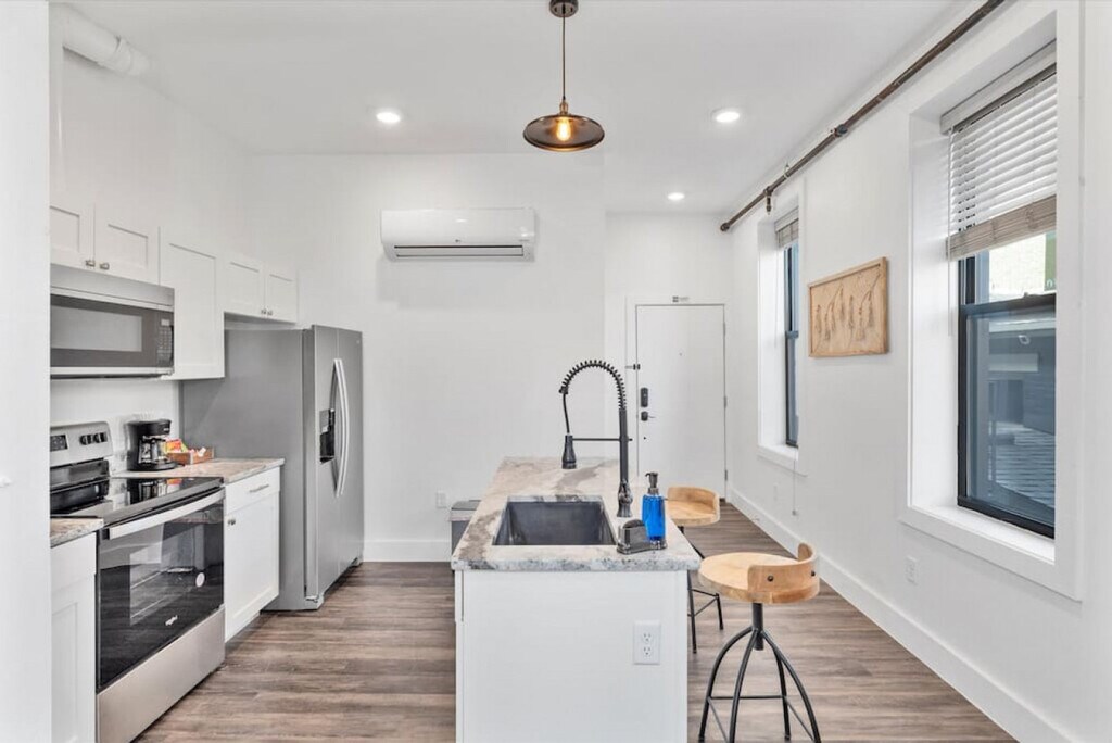 Experience the vibrant heart of Over the Rhine (OTR) in Cincinnati with this newly remodeled loft-style condo located directly on Findlay Market. This condo offers the perfect opportunity to feel at home while being just steps away from some of the best restaurants, breweries, shops, and theaters the city has to offer. Enjoy the convenience of a less than 1-minute walk to the nearest free streetcar stop, providing easy access to all of downtown Cincinnati and its stadiums. Everything in this newly renovated unit is new, featuring an open kitchen and living area with stainless steel appliances. The central air and heat ensure comfort throughout the year, keeping you cool in the summer and warm in the winter. Pets are welcome with a $300 cleaning fee for excessive pet hair cleanup. Additional fees may apply for deep cleaning or security services if required. Situated in a prime location, this condo is a stone's throw from Findlay Market, Ohio's longest-running farmers market, and surrounded by a lively neighborhood known for its bars, restaurants, boutiques, and more. With a free streetcar stop just a minute away, you can easily explore downtown Cincinnati and visit attractions like the Cincinnati Ballet, Opera, Music Hall, and the new FC Cincinnati Stadium. The area is a mixed-income, urban neighborhood where well-appointed condos exist alongside low-income housing, offering a diverse and dynamic living experience. Quiet hours are observed from 9:30pm to 8am, and amplified music is strictly forbidden without advance written consent. Smoking and open flames are not allowed on the property. Violating house rules may result in reservation termination without refund, and additional fees may apply for certain violations, such as a $300 cleaning fee for smoking indoors or excessive pet hair cleanup. A $170 re-keying fee applies for unreturned keys, and deep cleaning fees may be charged for stays longer than 14 days or if the unit is left in disorder. [SI]