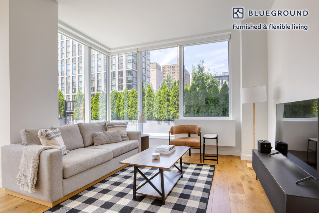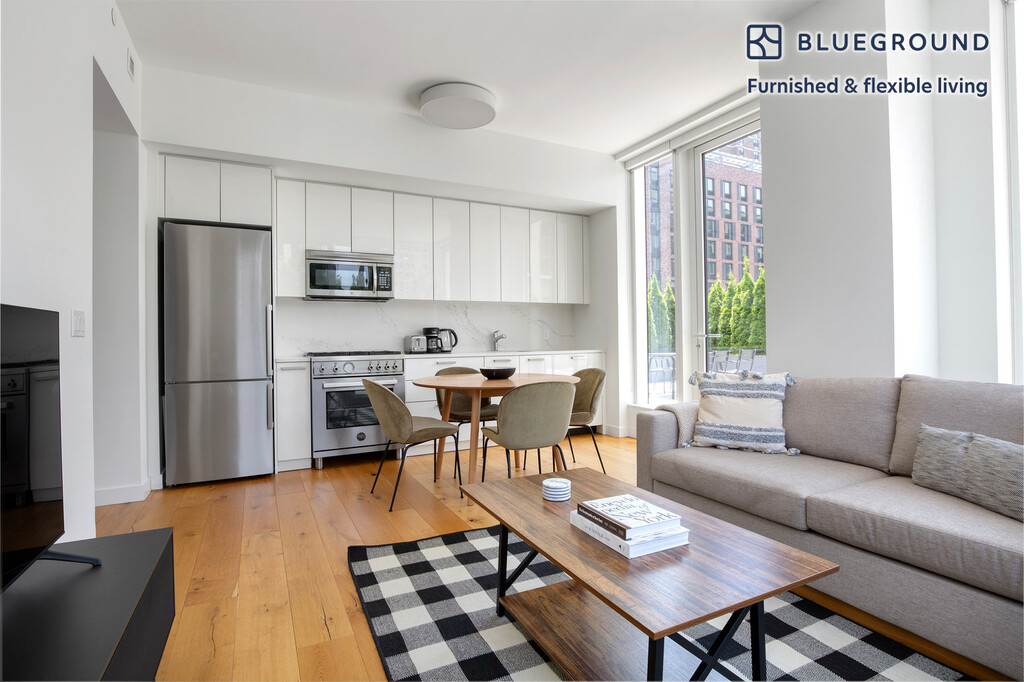 Discover the best of New York, with this two bedroom apartment in Lower East Side with balcony views over the city. It’ll be easy to simply show up and start living in this stylishly furnished apartment with its fully equipped kitchen, charming living room, and our dedicated, on-the-ground support. (ID #NYC1520) The advertised rate of $9,350/month is the lowest available price, based on a 12 month(s) stay with a move-in date of July 2, 2026. Rates vary depending on the duration of stay, season, and other parameters. For exact pricing and additional pricing components, please visit our website and enter your desired move-in and move-out dates. The rate is applicable when billed upfront; it can be higher if billed in multiple payments. Brokers are welcome to reach out. Were you looking for an unfurnished lease? Try Blueground instead and upgrade from unfurnished to furnished living: - Furnished at rates comparable to unfurnished - No setup or furniture costs - save thousands - Move-in ready - save time, just bring your suitcase Designed with you in mind As with any Blueground apartment, you’ll find a thoughtfully designed space complete with beautiful furniture and a fully equipped kitchen in this two bedroom property. And, thanks to our superior quality mattresses, luxury linens, and towels, you can relax knowing you’ll always feel comfortably at home. When you’re ready for some fun, you can take in the New York vibes or bring the entertainment to you with the premium wireless speaker or smart TV. This apartment also offers in-apartment laundry. Sleeping arrangements Queen Bed, 63in/160cm Queen Bed, 63in/160cm Amenities Building amenities unique to this two bedroom apartment include an on-site: - BBQ Area - Doorman - Dryer - Elevator - Washing machine - Lounge - Pets allowed Arrival and ongoing support The entire apartment is yours to enjoy! Throughout your stay, you’ll have access to our Client Experience team through the Blueground App. You can schedule additional cleanings, submit maintenance requests, and view our neighborhood recommendations with just a few taps. We’ll share all details upon confirmation of your stay. Ideally Located This furnished property is located in the Lower East Side, also known as LES. The neighborhood never sleeps thanks to the booming bars, music venues and restaurants that it offers. Long-time residents mingle with youngsters who nest nearby, giving the area unique, eclectic character. During the day, the LES is rather quiet, providing locals with the chance to stroll around the hidden boutiques across the neighborhood. On the weekends, go for lunch at one of the area’s trendy restaurants. Pathways along the East River offer great views of the Williamsburg Bridge and are ideal for biking. Wall Street, Union Square, and Grand Central are only a 20-minute subway ride away. Other things to note Building amenities may have an extra cost. This Blueground apartment has flexible lease options, allowing you to book it for one month, a year, or more. Pets are welcome, though weight limits and breed restrictions apply and may incur fees. Brokes CYOF. We take great pride in ensuring every photo displayed is shot in our own units with our actual furnishings. That said, we regularly refresh our decor and furniture arrangement, which may differ from what’s pictured. [SI]