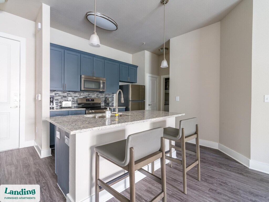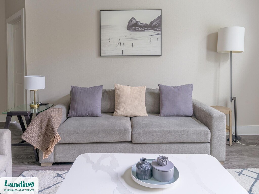 Landing offers flexible lease terms from weeks to months. Please always visit our website or contact us for the latest pricing & availability. Stay longer, save more: 6-Month Minimum base rent: starts at $2576/mo 12-Month Minimum base rent: starts at $2269/mo Landing offers flexible leases across a network of over 35,000 fully-furnished apartments throughout 375+ cities so you can rent on your terms, practically anywhere, and avoid the hassle of paying deposits or application fees. Visit to learn about all the benefits of a Landing membership, see our competitive up-to-date pricing, explore available apartments, take virtual tours, and make reservations online without jumping through traditional rental hoops. Landing's apartments at Voyager at Space Center are designed for comfortable, easy living, with the ability to stay as long as you like. Experience living with Landing Every apartment is outfitted with all the modern essentials including: custom-designed furnishings, a fully-equipped kitchen with deluxe stainless steel appliances, a gourmet coffee maker, premium linens, Smart TVs, and incredibly fast, reliable internet for working from home. When you live with Landing, you'll enjoy a hassle-free experience with the added benefit of 24/7 access to our dedicated member experience team. Some of the nitty-gritty: a background check and proof of income are required; we're completely smoke-free; bundled utility packages and pricing vary based on length of stay; pet-friendly options available; listed price reflects a 12-month minimum stay.