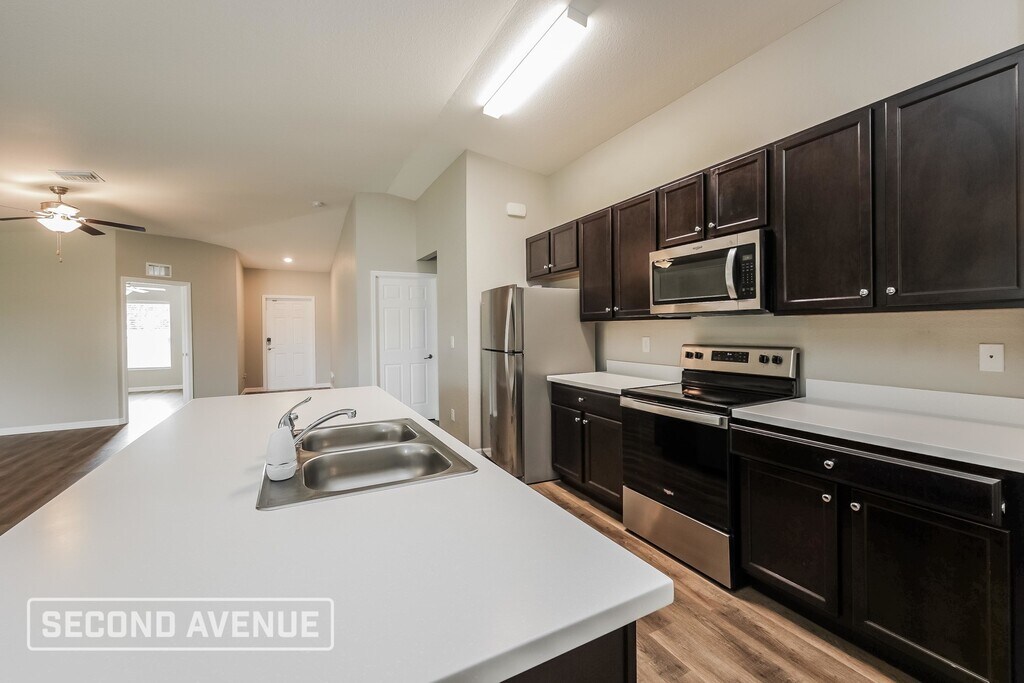 COMING SOON! This home is scheduled to be ready for viewing on May 14, 2026. You can still apply and reserve this home until it is ready for an in-person tour. Contact us today for more details on our pre-leasing process. Experience the charm of this 4-bedroom, 2-bathroom home! The open floor plan greets you with a spacious living and dining area featuring vaulted ceilings and a bright sliding door leading to a covered rear patio. The gourmet kitchen is designed for chefs, boasting Energy Star-rated stainless steel appliances, a convenient pantry, and ample cabinet space. The primary suite offers an oversized closet and a luxurious en-suite bathroom, while the secondary bedrooms provide space and natural light. Stylish plank flooring flows throughout, and a two-car garage ensures ample room for vehicles and storage. Schedule a self guided tour today! LOCATION: Just minutes from Florida beaches; Easy access to Kismet PKWY W, Diplomat PKWY W and everyday conveniences like grocery stores and restaurants SCHOOL DISTRICT: Lee County School District OUTDOOR SPACE: Covered rear patio Second Avenue is proud to offer the Hometown Hero Leasing Discount Program to honor and support local heroes, including police officers, firefighters, emergency medical personnel, educators, and government employees. Eligible participants who are fully approved for a lease will enjoy a reduced security deposit on their Second Avenue home. This offer cannot be combined with other promotions or discounts unless otherwise specified. Available in Select Markets - Ask About Eligibility. By choosing a professionally managed rental home by Second Avenue, you'll enjoy personalized services such as our all-in-one resident portal, dedicated call center, and professional maintenance program. All Second Avenue homes for rent are pet-friendly (pet fees and breed restrictions apply) and we offer convenient self-guided showings 7 days a week. We also proudly offer military discounts for active-duty personnel. Visit to apply online, review qualification criteria, and search for additional homes for rent; or contact our leasing team for more information. Additional fees may include, yet not limited to septic/sewer, or renters insurance. Approved applicants must pay a hold fee and begin the lease agreement within 7 to 12 days of approval. Don't delay, as our homes lease quickly! Please be aware of scams. Second Avenue rental homes are not advertised on Craigslist, Facebook Marketplace, or any other classified advertising websites. We will never ask you to wire funds. Applications and lease signings are completed only through . All photos shown are for illustrative purposes. Certain finishes, flooring, and room orientation may vary.