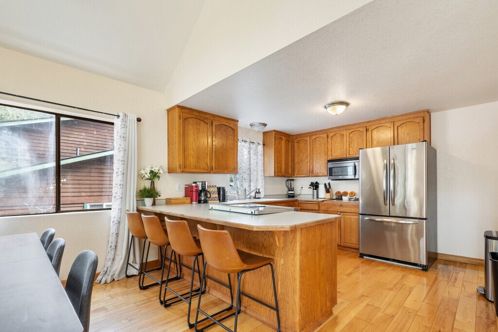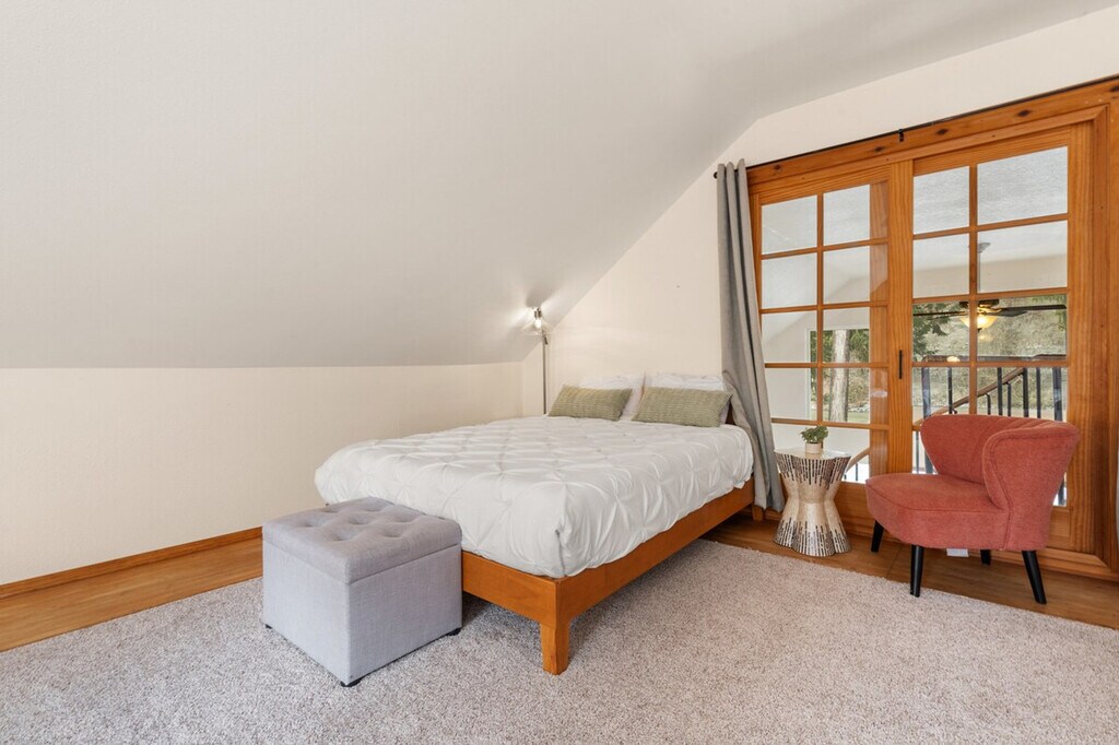 With the Stilquamish river gushing through its backyard, this riverfront chateau is the perfect home away from home in the North Cascade Mountains. The tall ceilings provide river views from all sides. Feel at home in this PNW oasis. The river flows through the backyard with a cedar hot tub overlooking it. The entrance opens to the open kitchen concept tall ceiling living room with sliding doors leading to the deck and hot tub overlooking the river, all illuminated by hanging lights. The kitchen is well-appointed with every essential, and there's space to dine and hang out at the breakfast bar and the window-side table. This house has 3 bedrooms and 2 bathrooms. There is a huge front yard and driveway for all your parking needs. You can even park multiple RV's if you want. This home is 5 mins from the town of Granite Falls and 20 mins from the Mt. Baker-Snoqualmie National Forest. In the cascades you will find some of the best hiking and most beautiful natural features that Washington has to offer, including Gothic Basin, Big Four Ice Caves, Mt. Pilchuck Fire Lookout, Lake Twenty-Two, and Heather Lake. Other outdoor recreation activities in the area are endless, including hiking, whitewater kayaking, river tubing, backcountry skiing, and fishing. Guests have access to the whole house, except the basement. Do NOT try parking under the deck because it's not tall enough. [SI]