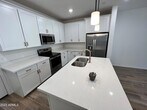 Beautiful Gated Neighborhood - Lakes at Annecy with multiple lakes, lighted walking paths and water features. Perfect great room layout with 3 bedrooms and 2.5 baths. Boasts a spacious chef's kitchen with quartz countertops, Shaker Winstead maple cabinetry and stainless-steel appliances (includes refrigerator, washer and dryer). Wood look tile panel flooring throughout with neutral colored carpet in the bedrooms. All bedrooms and laundry room are upstairs. 2-Car attached garage with direct access into the kitchen. This newer home is located in a neighborhood with amenities that include 3 community pools with Jacuzzis, BBQs, ramadas and sports courts. Located near 202 and walking distance to San Tan Mall, restaurants, Top Golf and more.